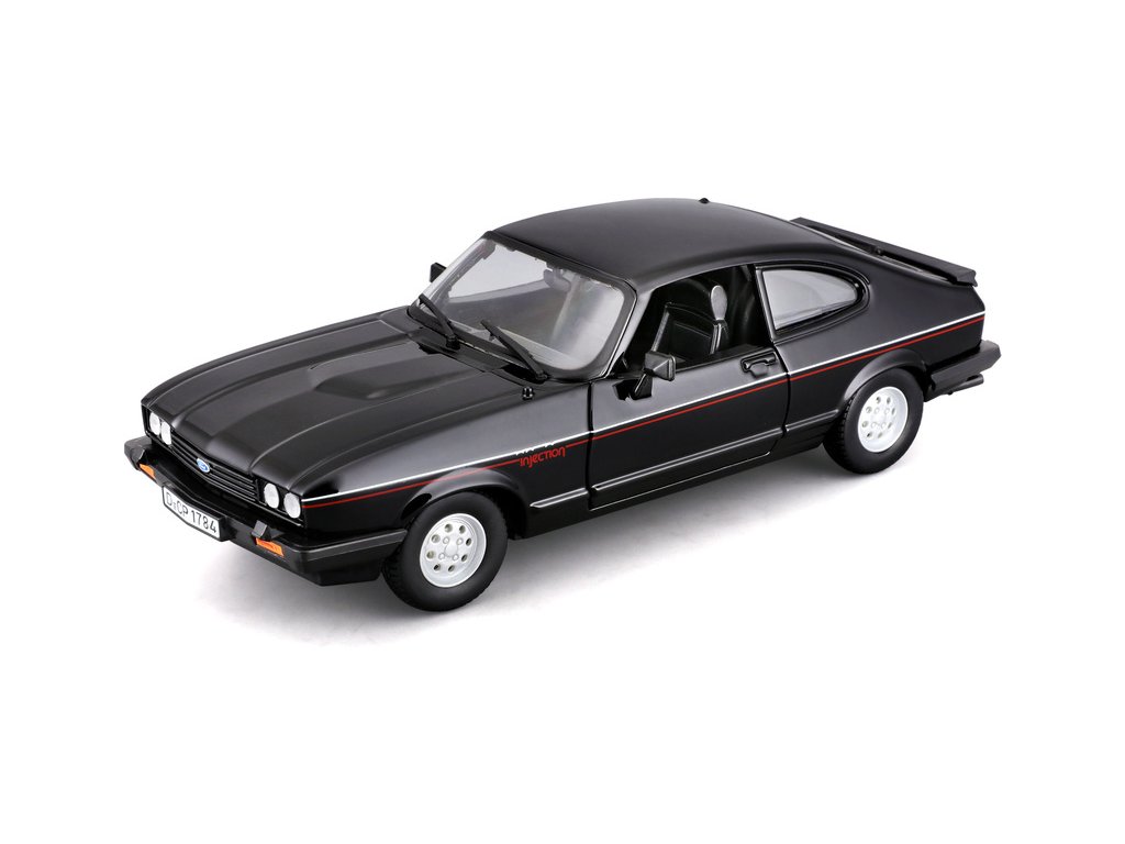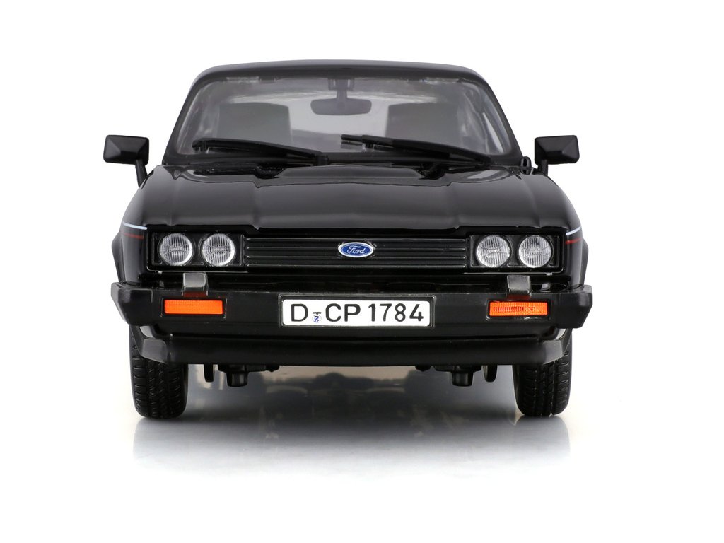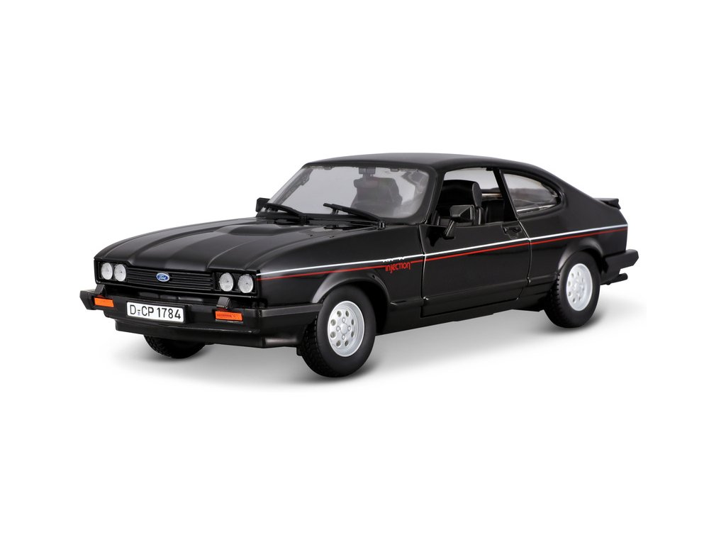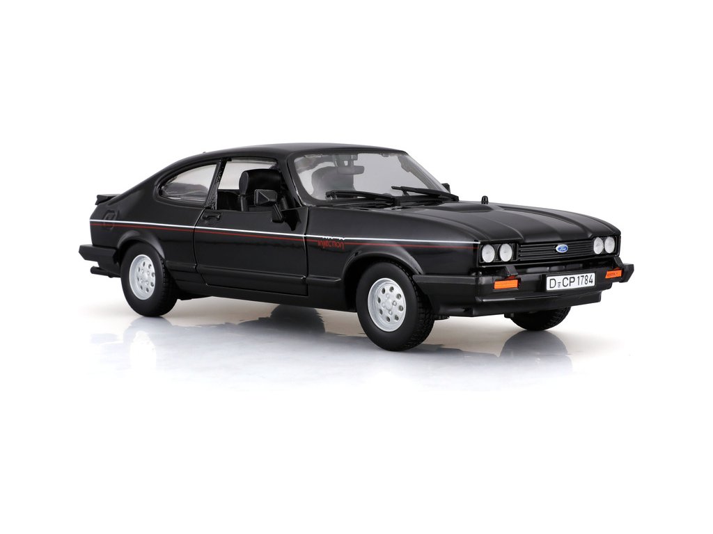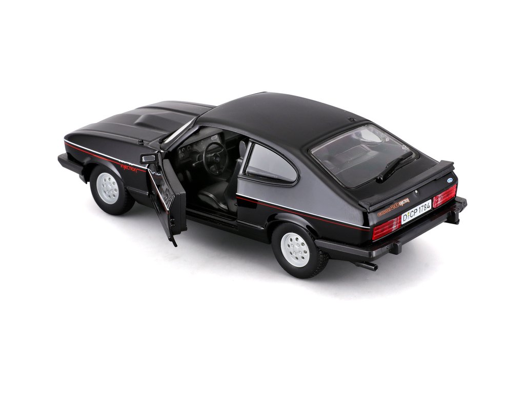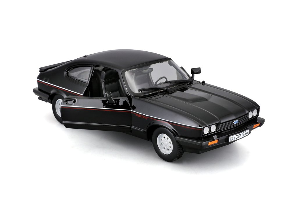Kovový model auta 1:24 Bburago 18-21093 Plus Ford Capri 1982 nejen pro sběratele. Model je v detailním provedení s otevíratelnými dveřmi v černé barvě. Velikost modelu je přibližně 18 cm.