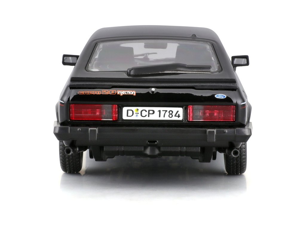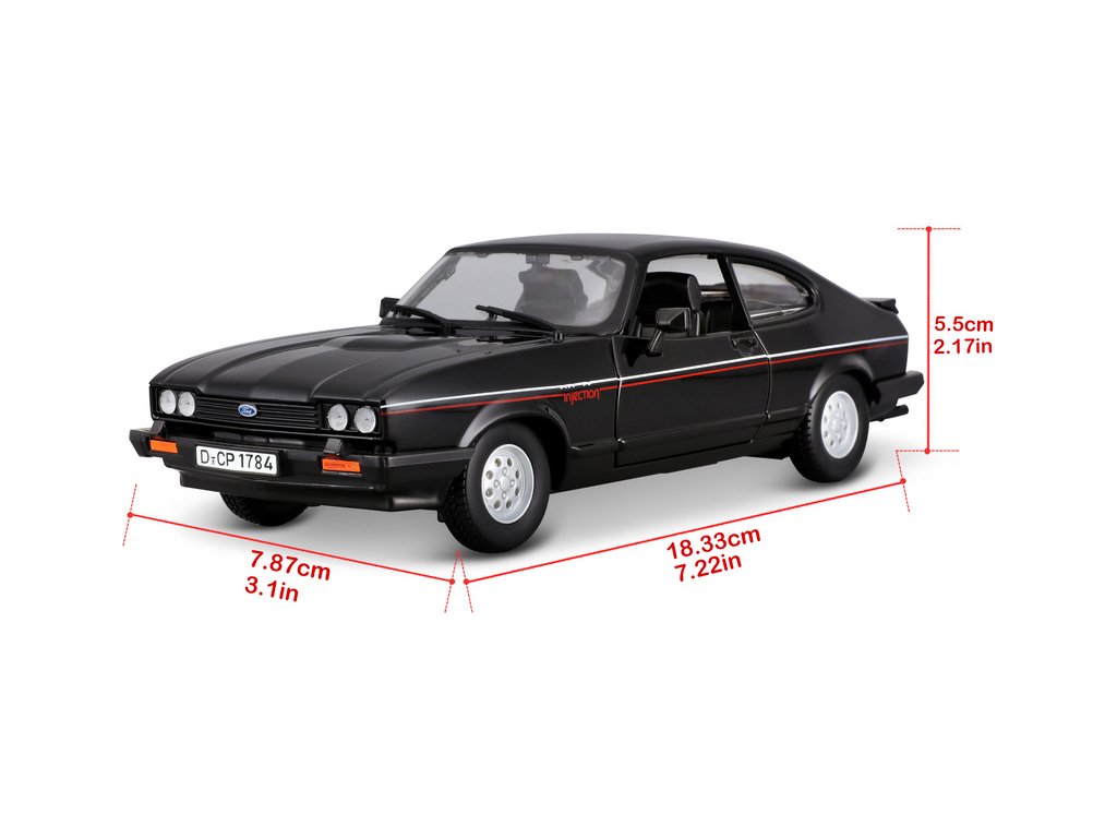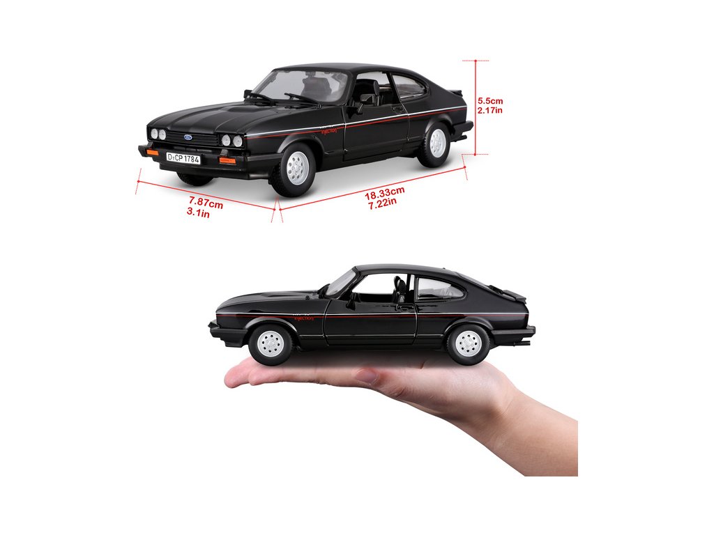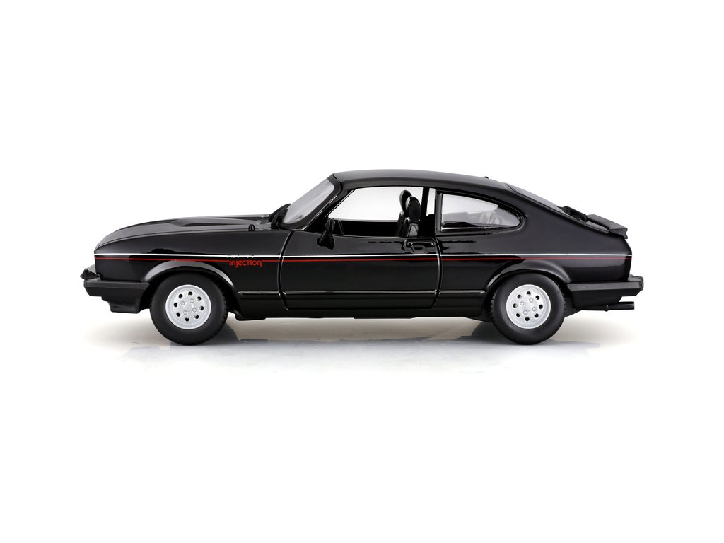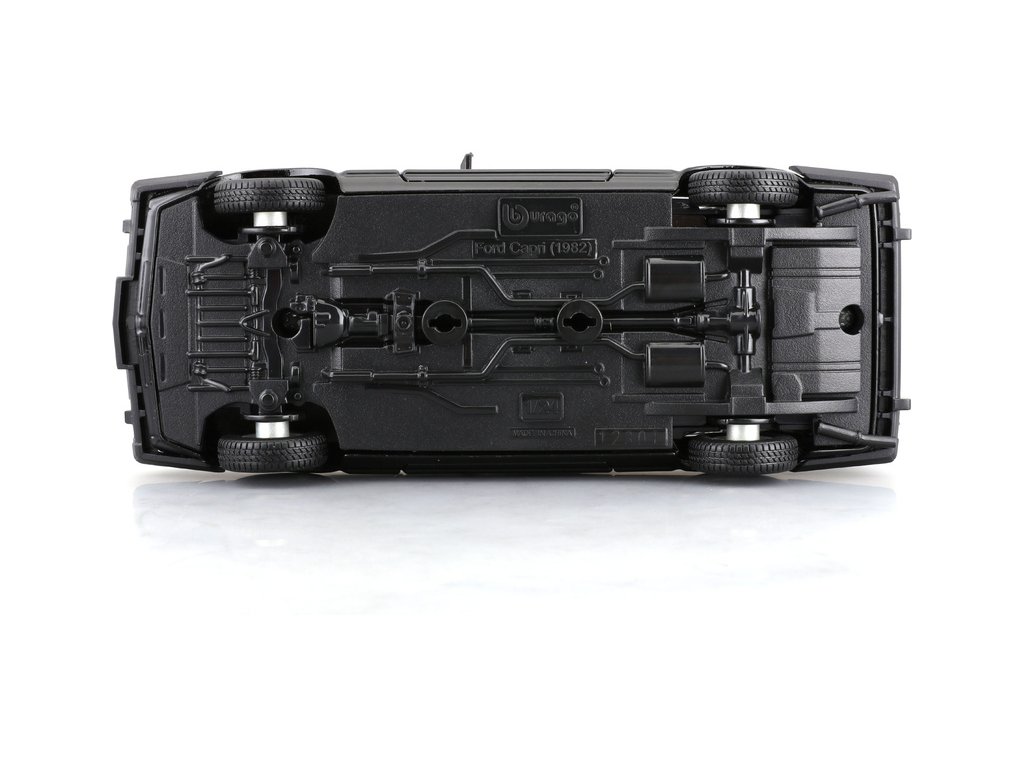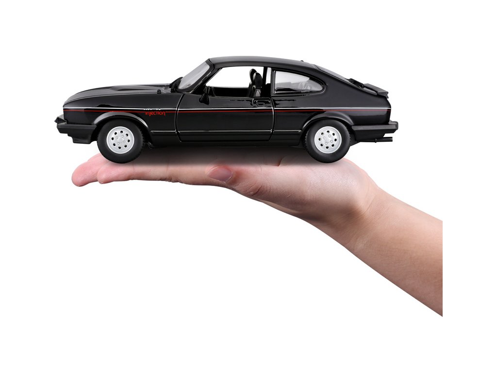 Kovový model auta 1:24 Bburago 18-21093 Plus Ford Capri 1982 nejen pro sběratele. Model je v detailním provedení s otevíratelnými dveřmi v černé barvě. Velikost modelu je přibližně 18 cm.