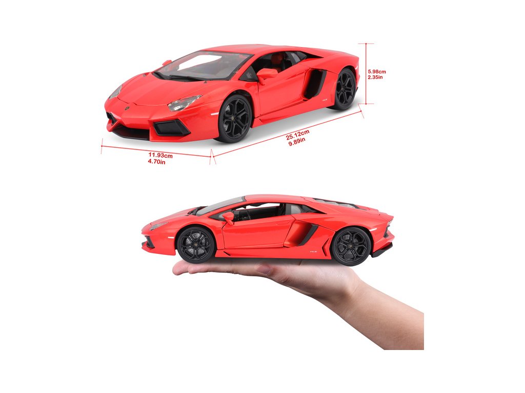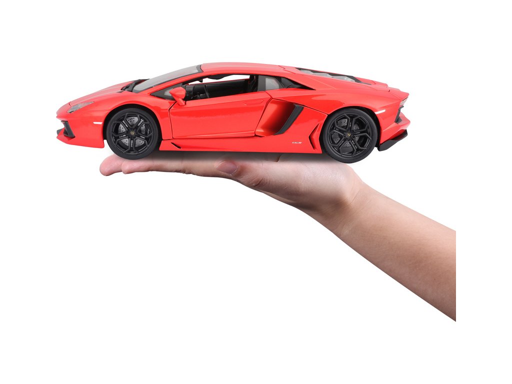 Kovový model auta 1:18 Bburago 18-11033 Plus Lamborghini Aventador LP 700-4 nejen pro sběratele. Má otevírací dveře a kapotu, natáčení kol volantem je plně funkční. Barva modelu je oranžová metalíza a je přibližně 24 cm velký.