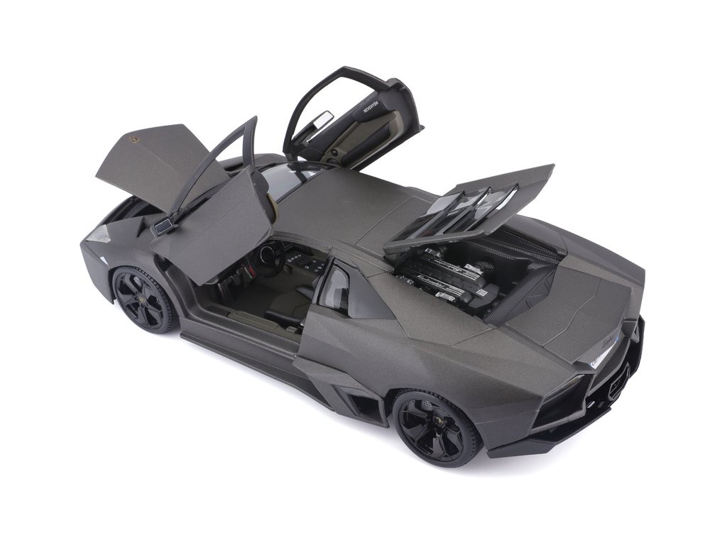 Kovový model auta 1:18 Bburago 18-11029 Plus Lamborghini Reventón nejen pro sběratele. Má otevírací dveře a kapotu, natáčení kol volantem je plně funkční. Barva modelu je šedá.