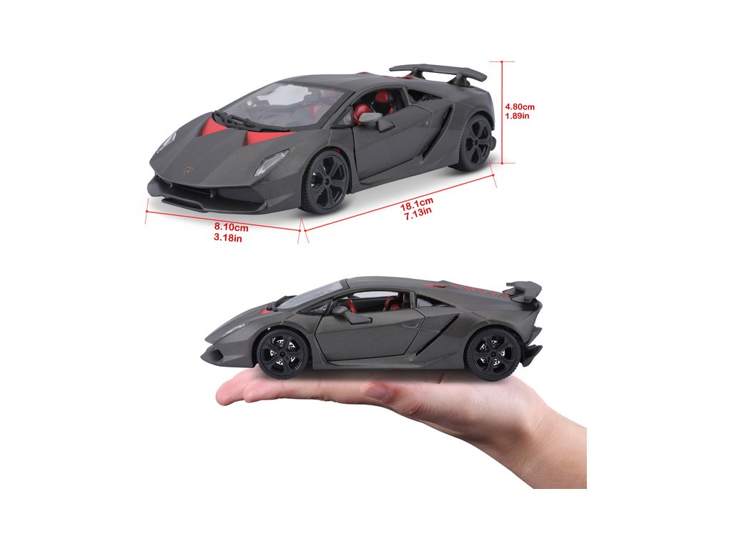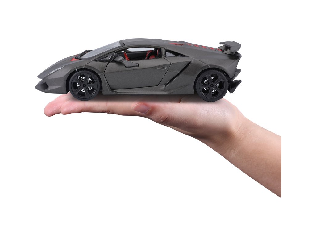 Kovový model auta 1:24 Bburago 18-21061 Plus Lamborghini Sesto Elemento nejen pro sběratele. Má otevírací dveře, natáčení kol volantem je plně funkční. Barva modelu je černá a je přibližně 17 cm velký.
