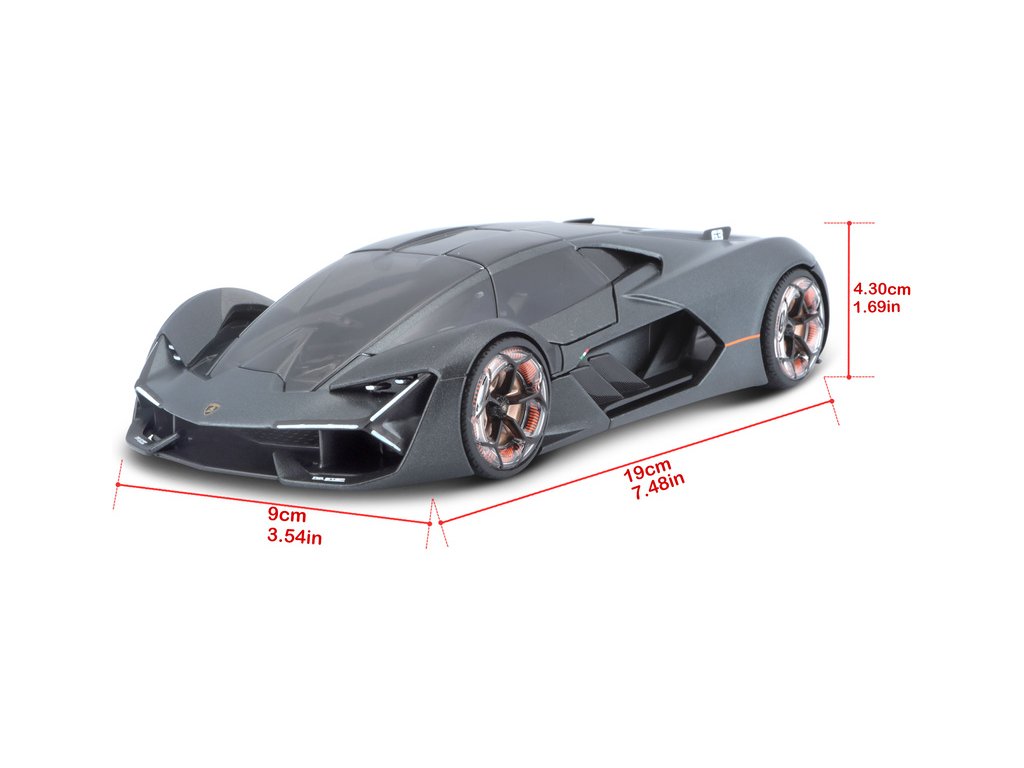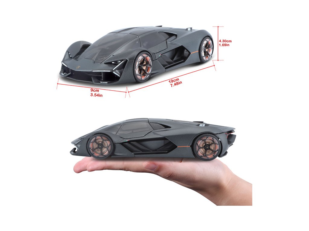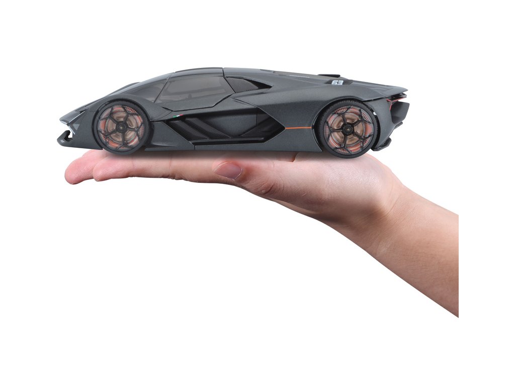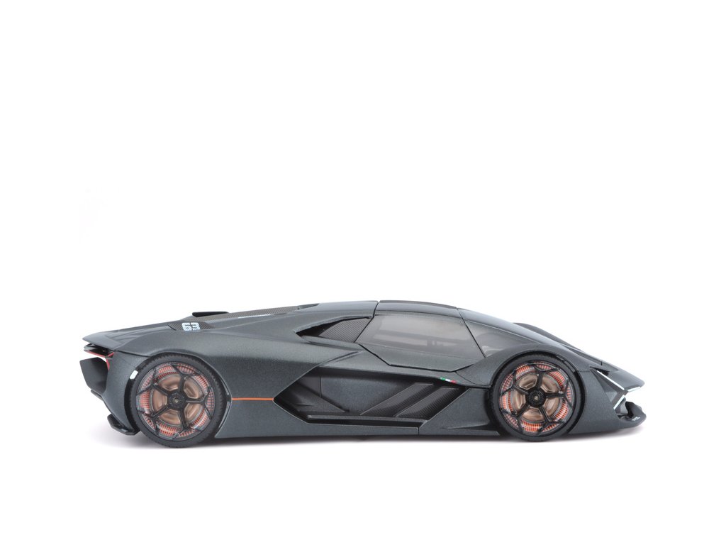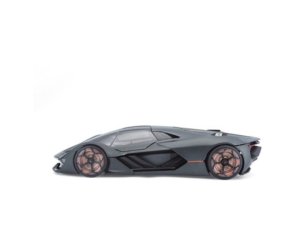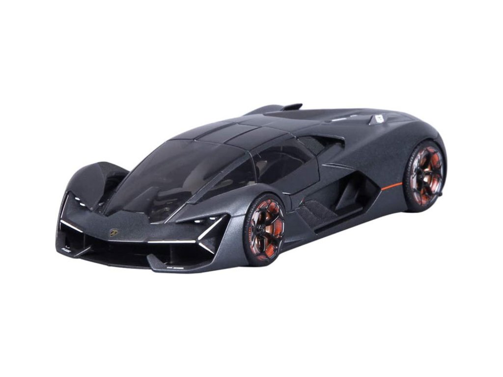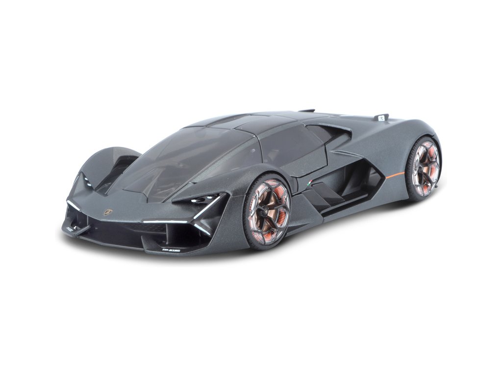 Kovový model auta 1:24 Bburago 21094 Plus Lamborghini Terzo Millennio nejen pro sběratele. Má otevírací dveře, barva modelu je šedá a je přibližně 19 cm velký.