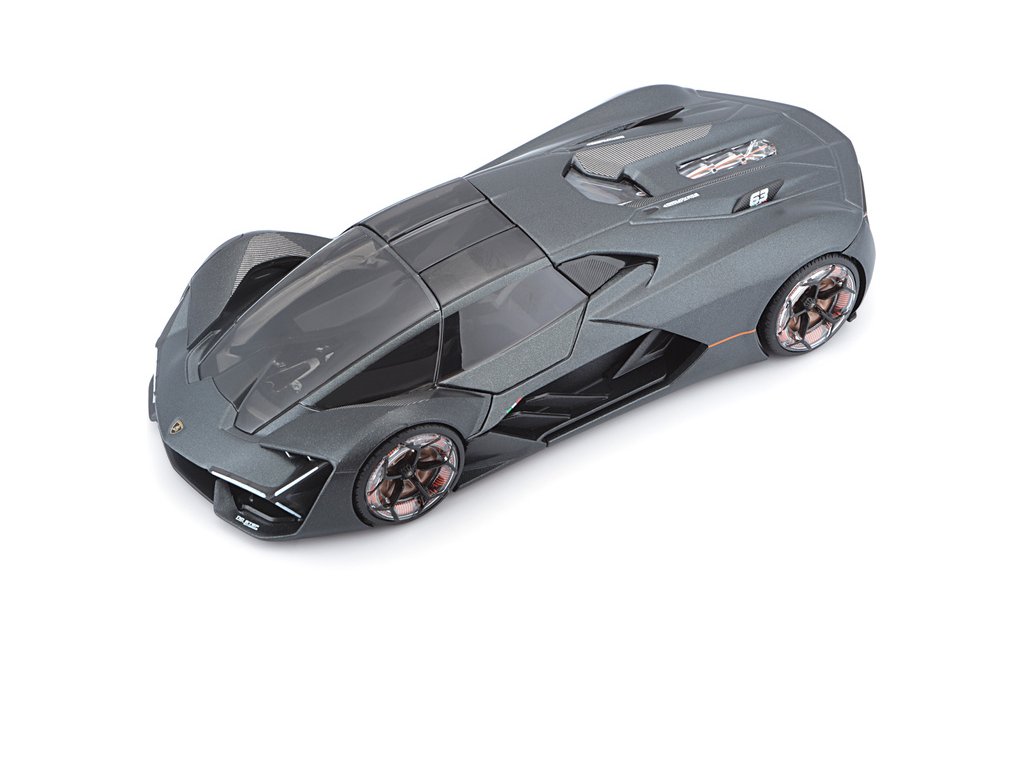 Kovový model auta 1:24 Bburago 18-21094 Plus Lamborghini Terzo Millennio nejen pro sběratele. Má otevírací dveře a kapotu, natáčení kol volantem je plně funkční. Barva modelu je šedá.