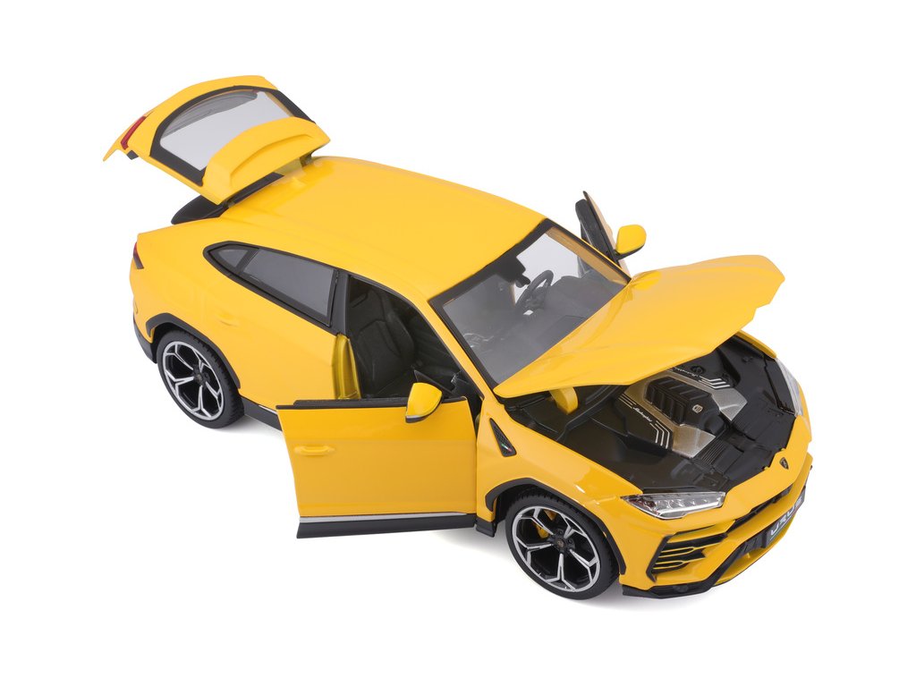 Kovový model auta 1:18 Bburago 18-11042 Plus Lamborghini Urus. Model má otevírací dveře a kapotu, natáčení kol volantem je plně funkční.