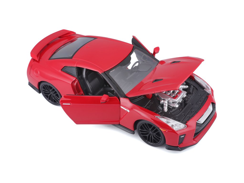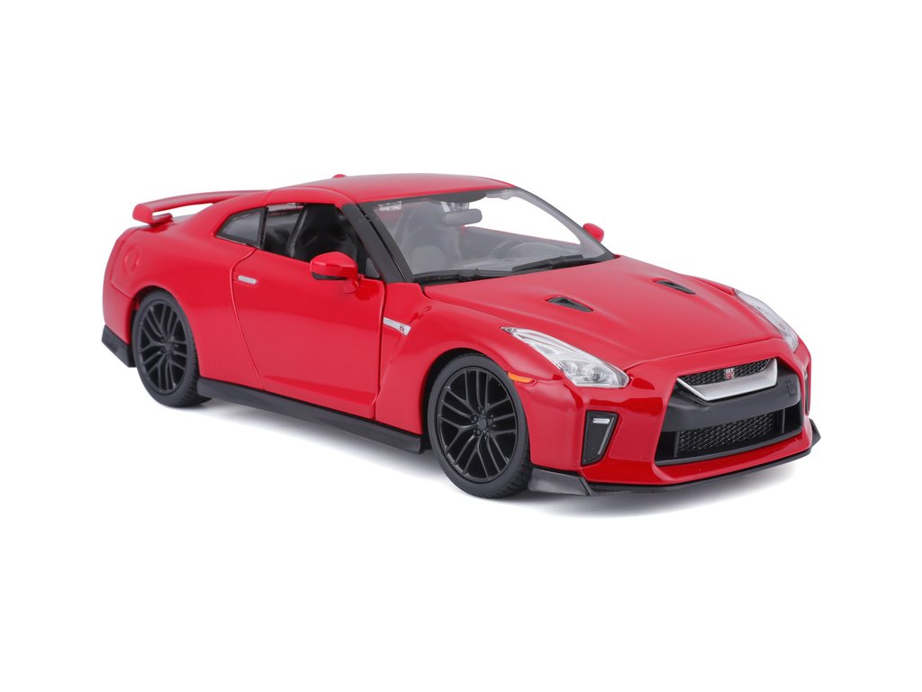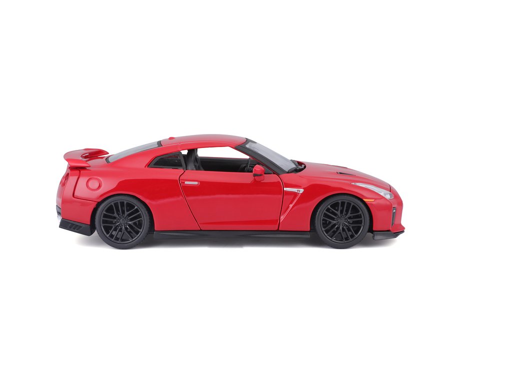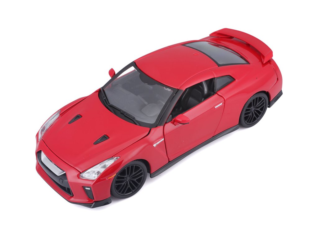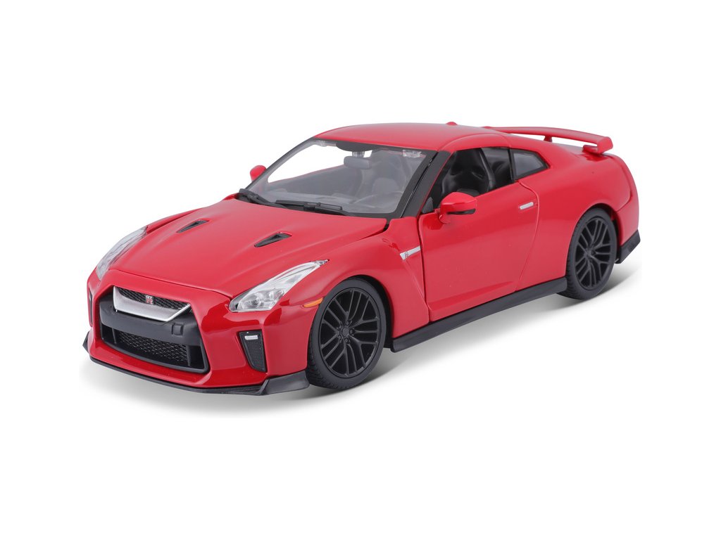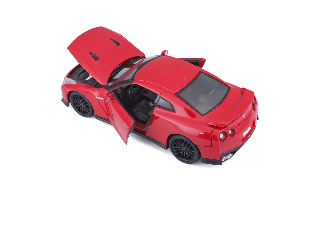 Kovový model auta 1:24 Bburago 18-21082 Plus, Nissan GT-R, nejen pro sběratele. Má otevírací dveře. Barva modelu je červená.