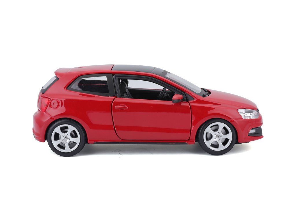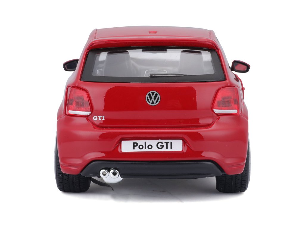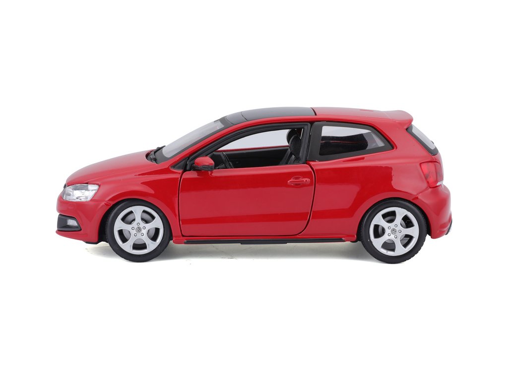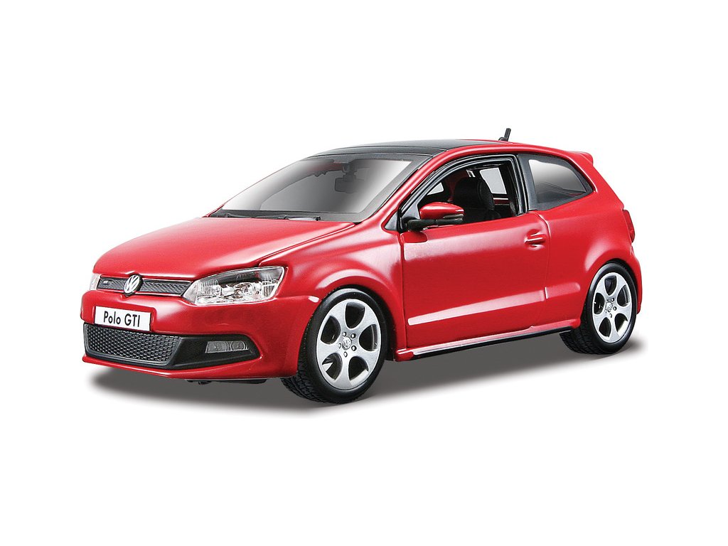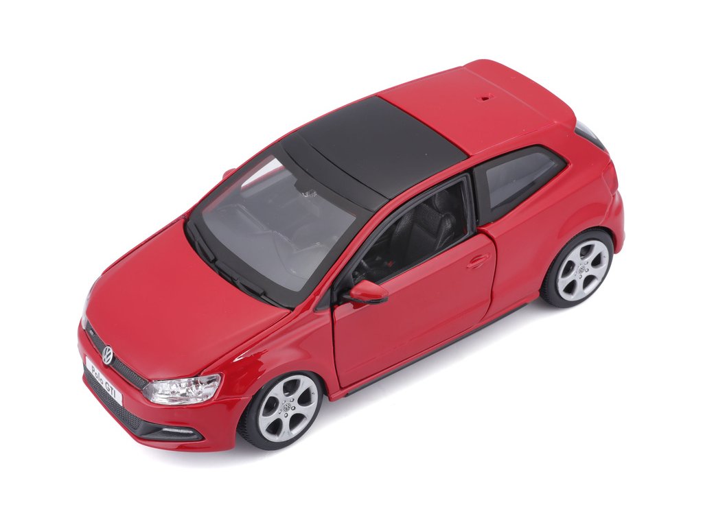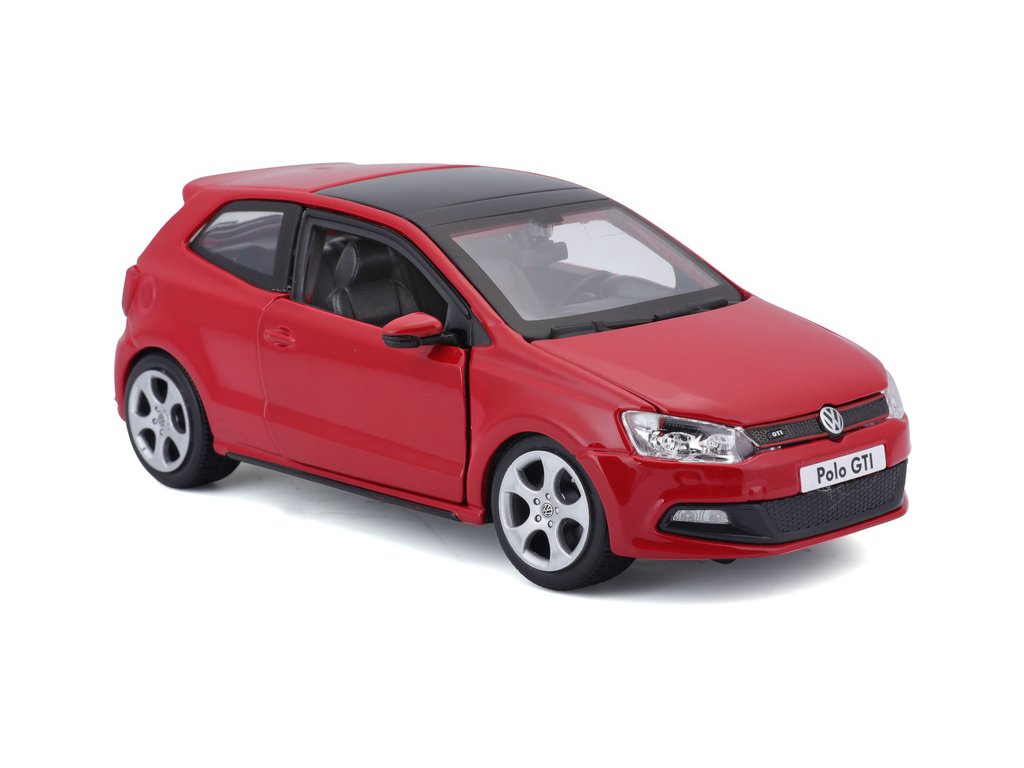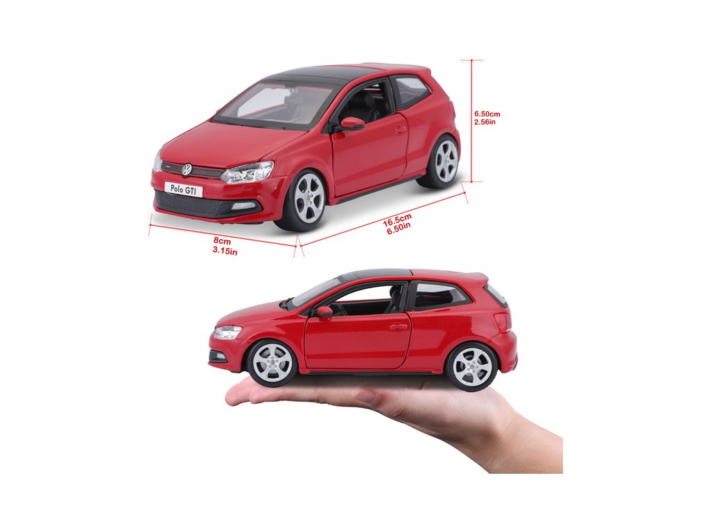 Kovový model auta 1:24 Bburago 18-21059 Plus VW Polo GTI Mark 5, nejen pro sběratele. Má otevírací dveře a kapotu, natáčení kol volantem je plně funkční. Barva modelu je červená metalíza a je přibližně 16 cm velký.