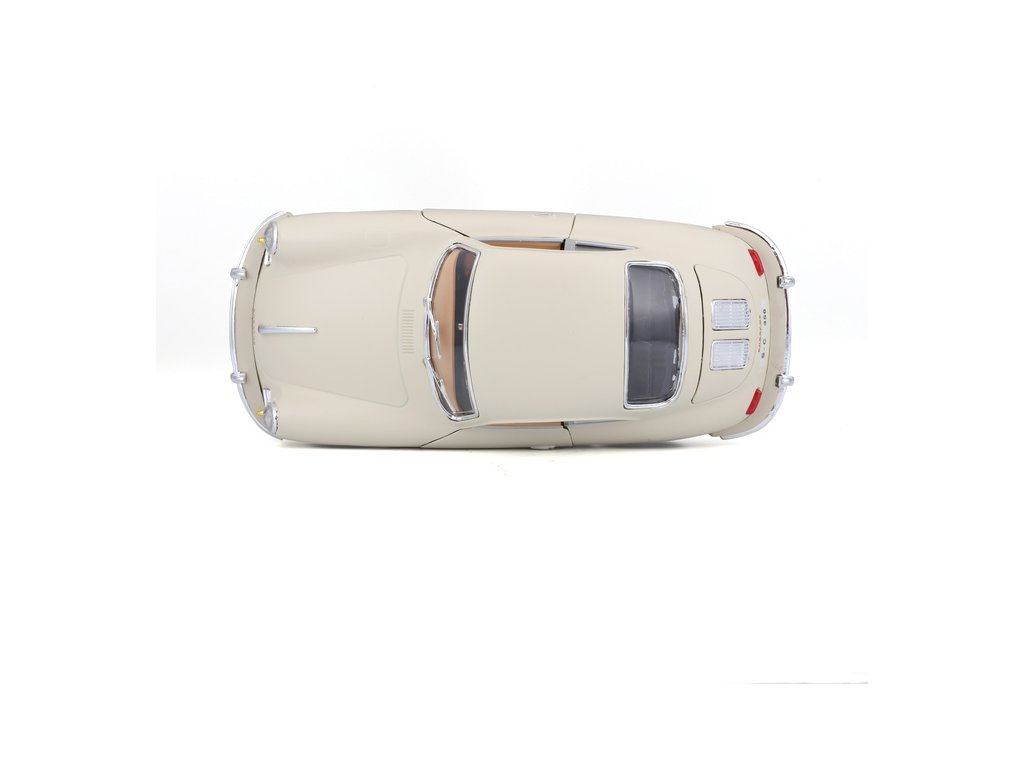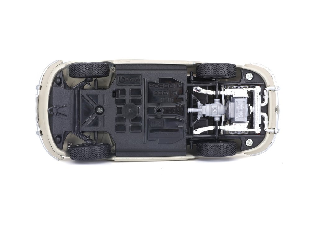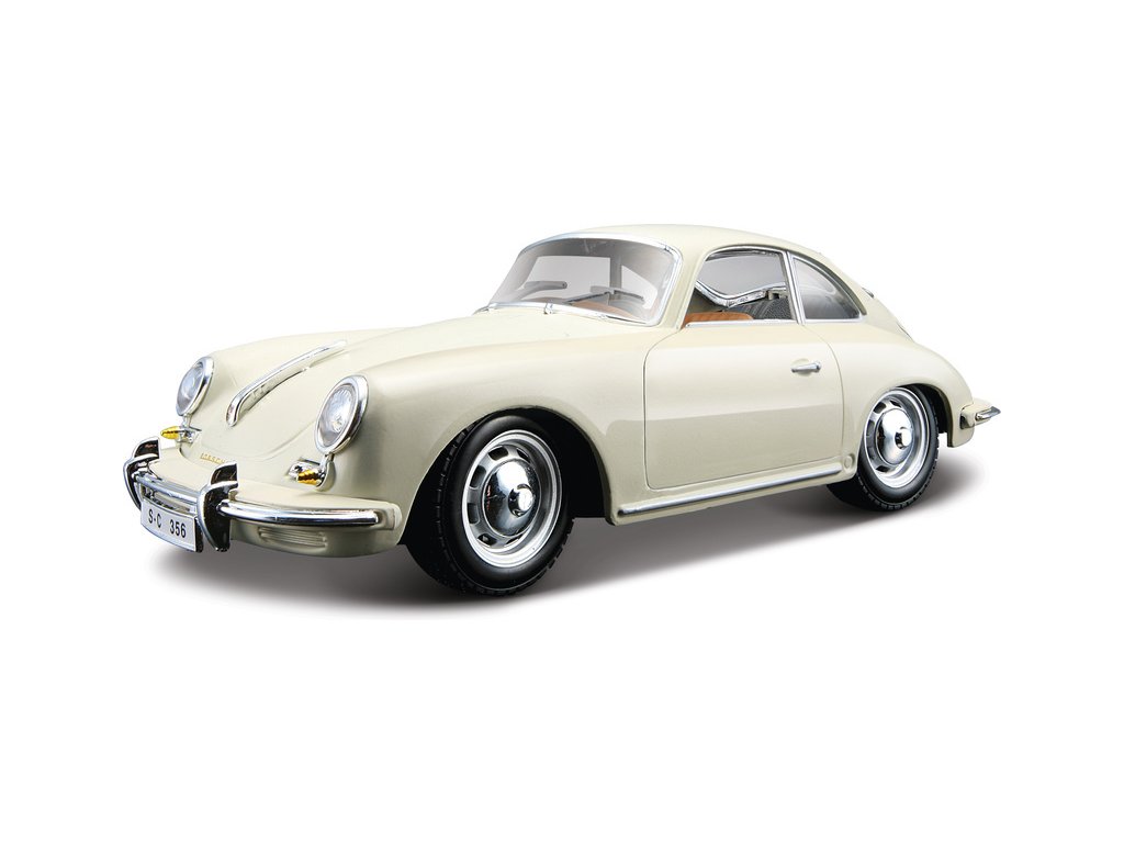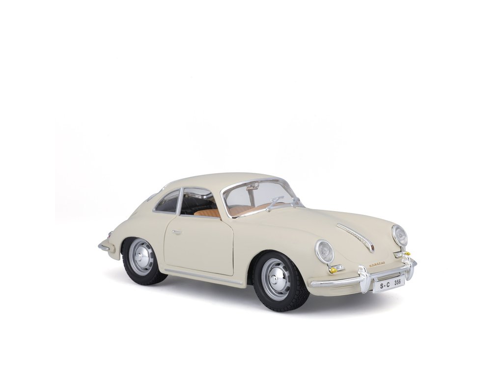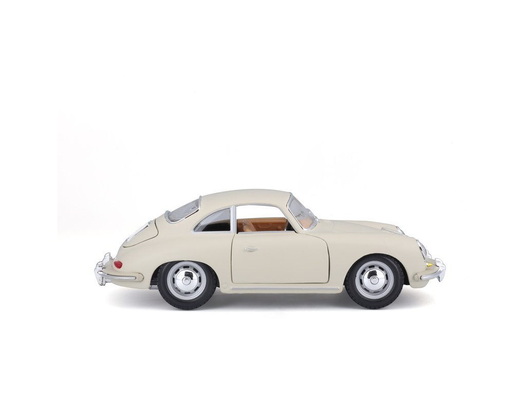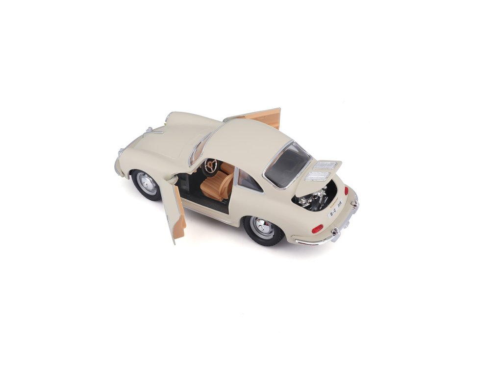 Kovový model auta 1:24 Bburago 18-22079 Porsche 356B Coupe (1961) nejen pro sběratele. Má otevírací dveře a kapotu, natáčení kol volantem je plně funkční. Barva modelu je krémová a je přibližně 18 cm velký.