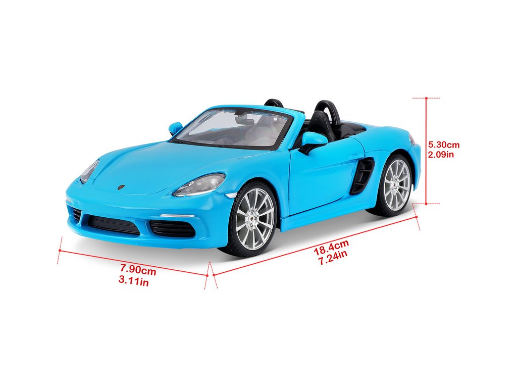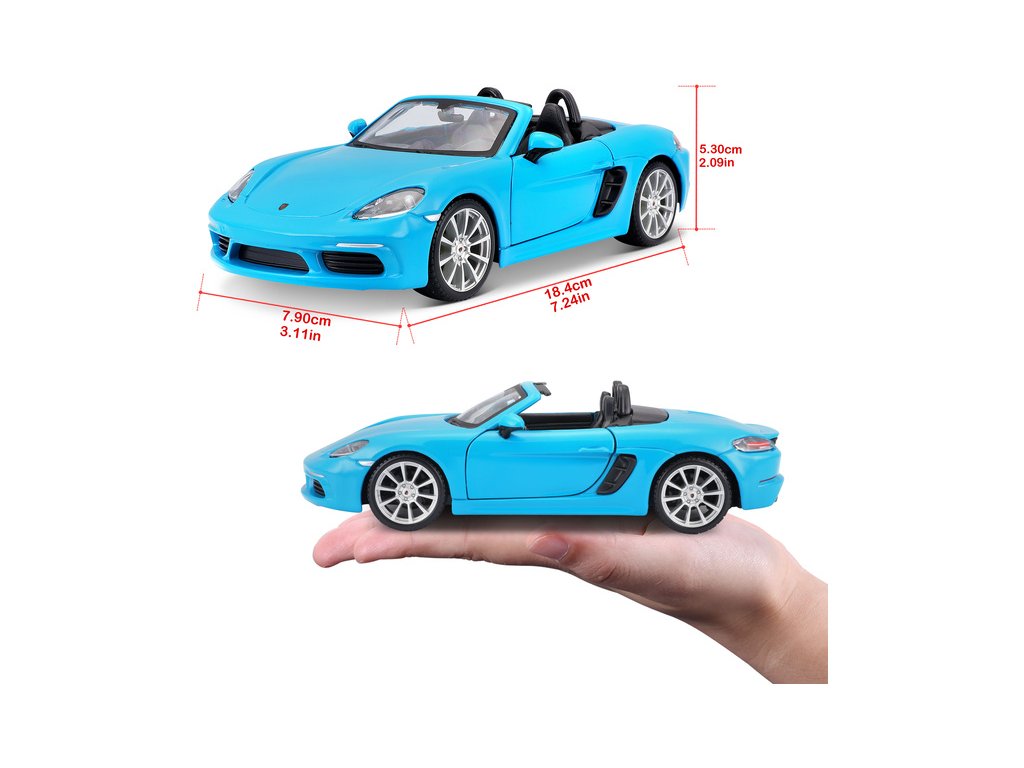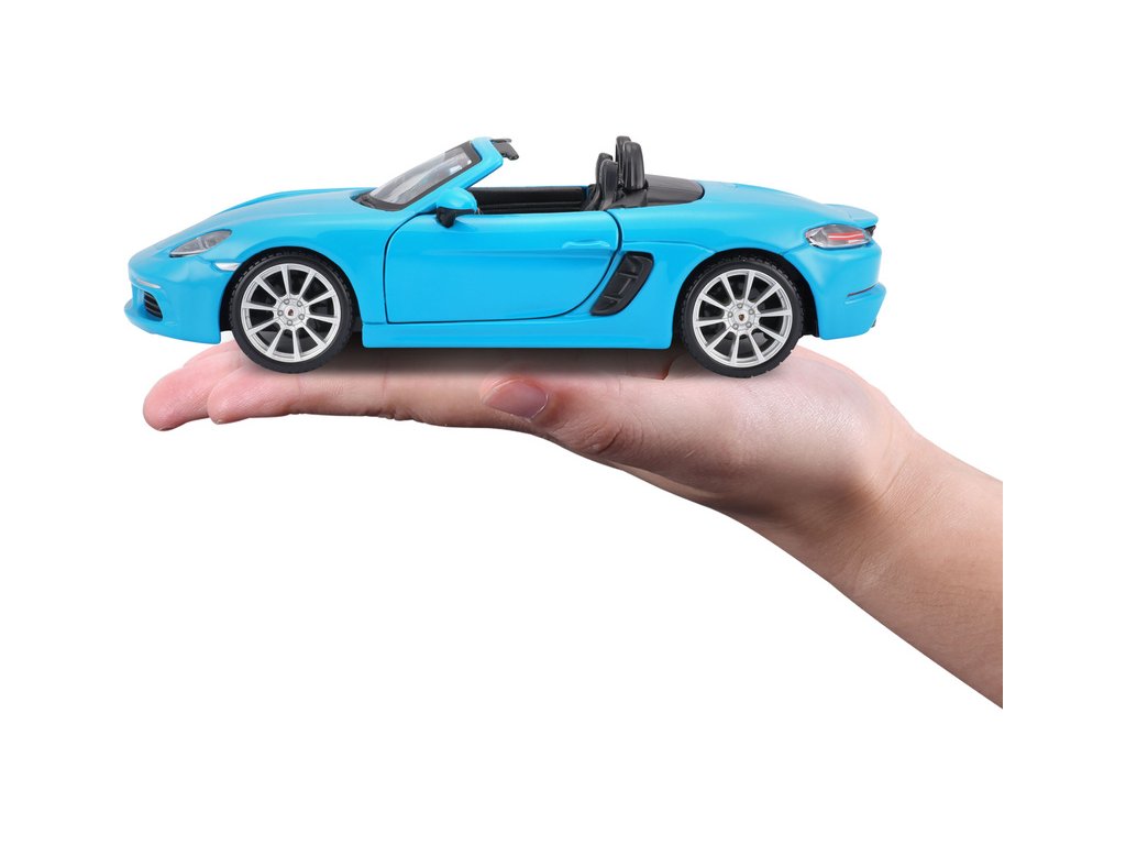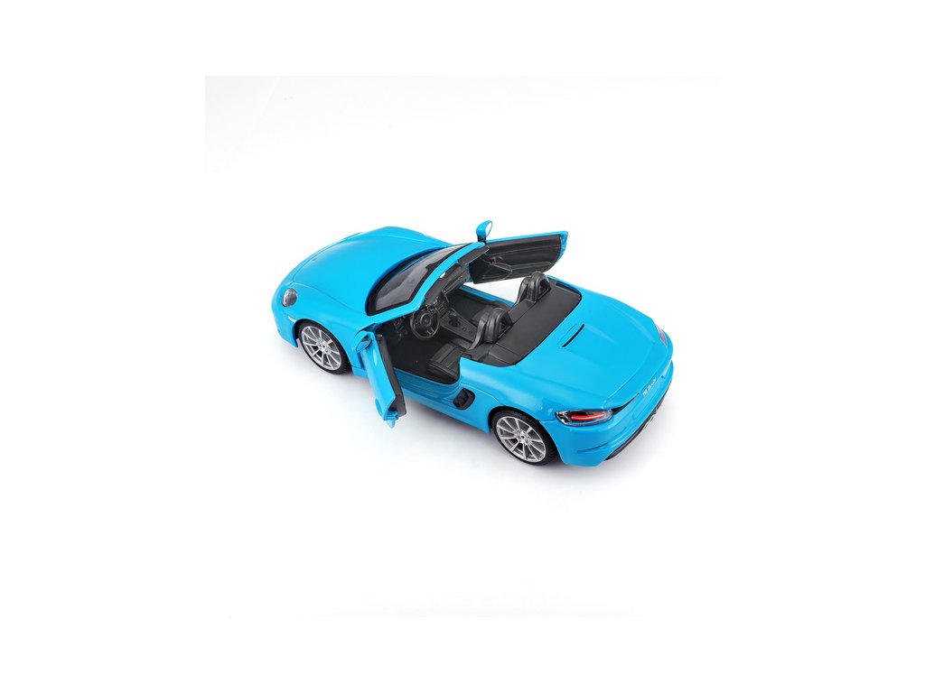 Kovový model auta 1:24 Bburago BB18-21087 Porsche 718 Boxster modrý nejen pro sběratele. Má otevírací dveře a je v detailním provedení. Barva modelu je modrá.