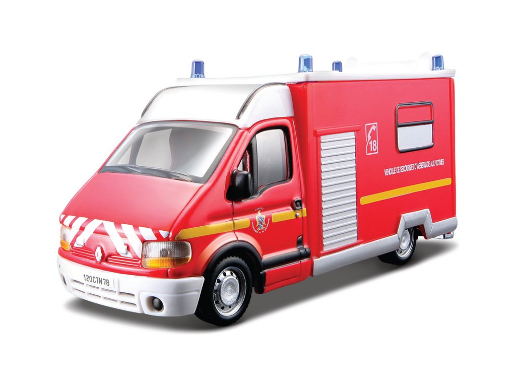 Mezi dětmi jsou kovové modely užitkových vozů velmi populární a jistě si oblíbí i Renault Master v měřítku 1:50 od Bburaga. Model má délku 11 cm, karosérie je vyrobena z kovu a obsahuje spoustu detailů. Červená barva - policie.