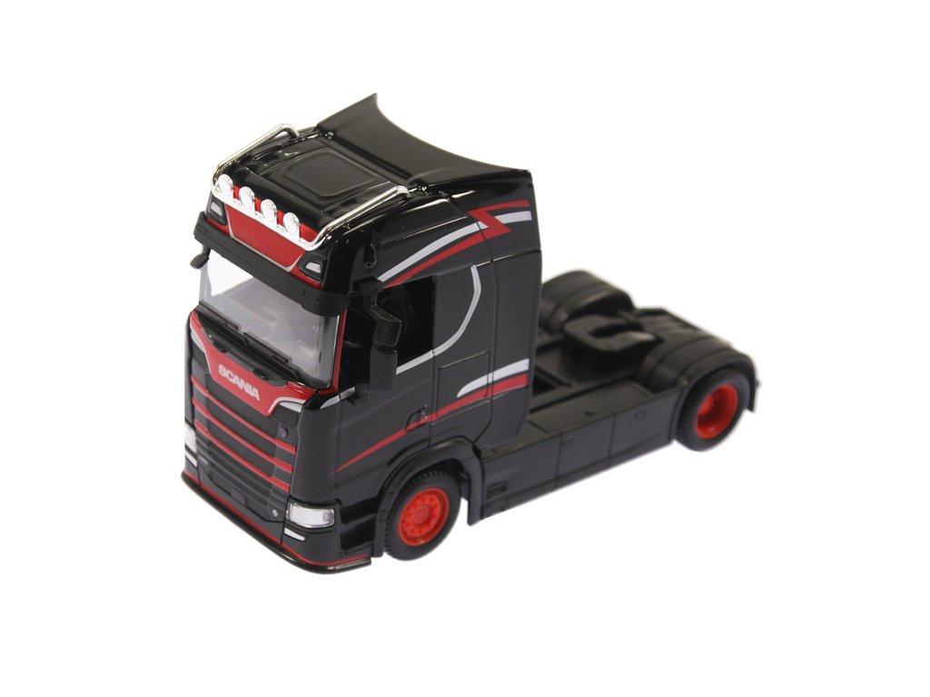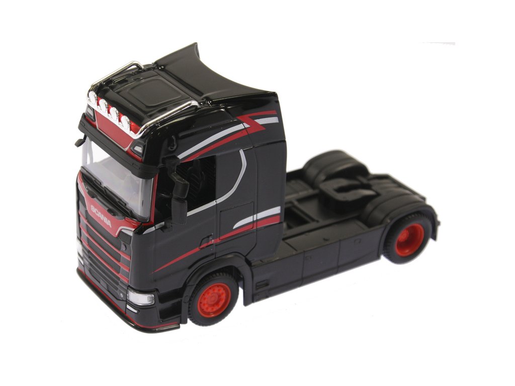 Kovový model Bburago 18-32207 - Scania 770S v měřítku 1:43. Je vyroben z kovových a plastových dílů v detailním zpracování. Scania je přibližně 15 cm velký a můžete k němu připojit návěs. Barva modelu je šedá.
