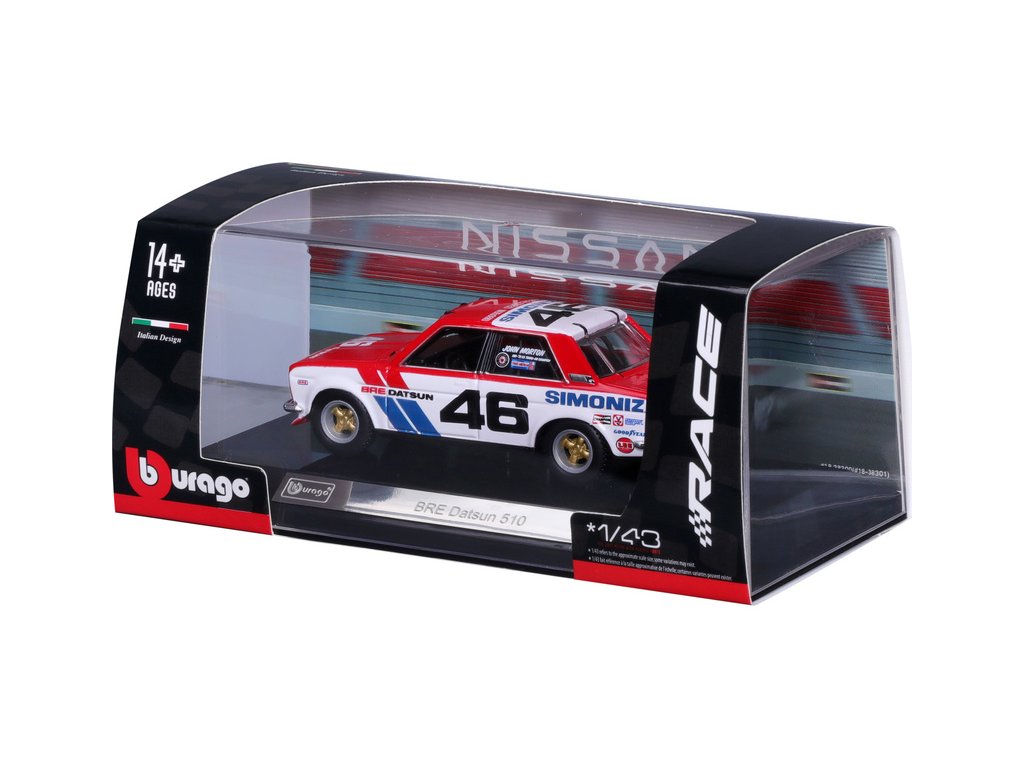 Kovový model auta 1:43 Bburago 18-38301 Sign. BRE Datsun 510 nejen pro sběratele. Model je ve špičkové kvalitě Signature Series. Je přibližně 10 cm velký.