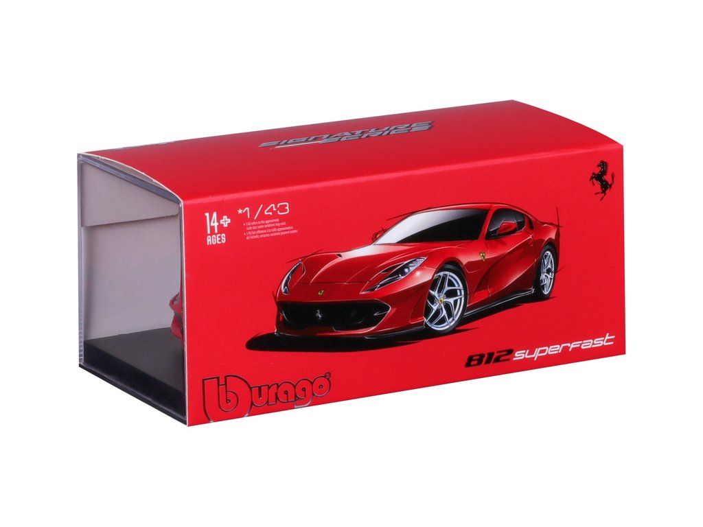 Kovový model auta 1:43 Bburago 18-36908 Signature Ferrari 812 Superfast nejen pro sběratele. Barva modelu je červená.