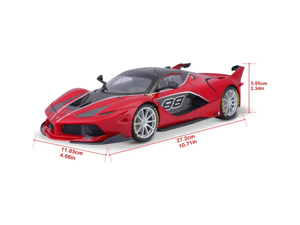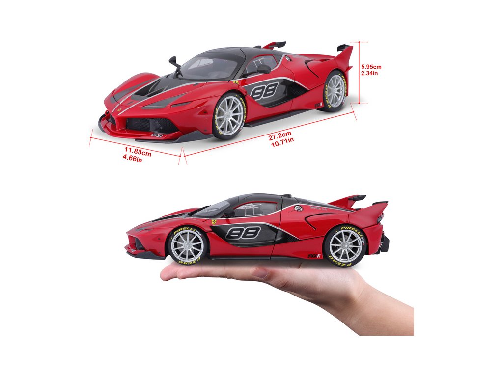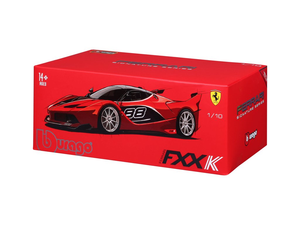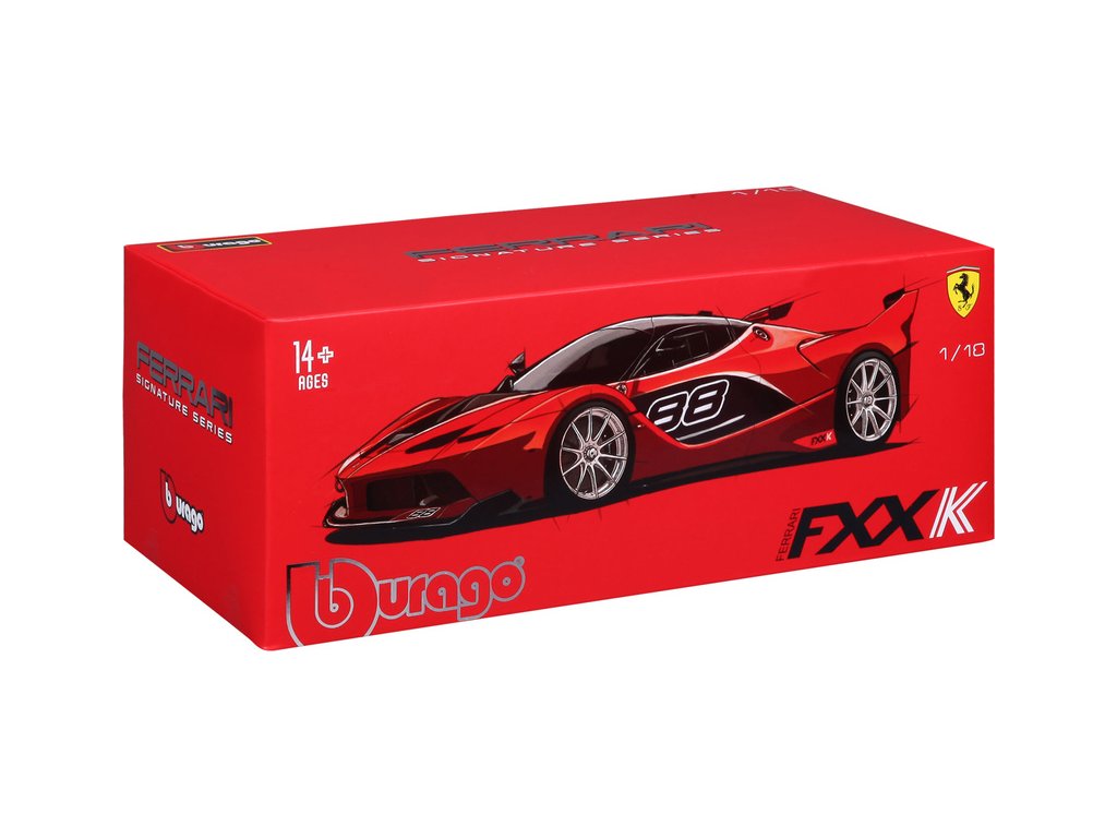 Kovový model auta 1:18 Bburago 18-16907 Ferrari FXX K nejen pro sběratele. Má otevírací dveře a kapotu, odpružené nápravy, natáčení kol volantem je plně funkční. Barva modelu je červená a je přibližně 25 cm velký.
