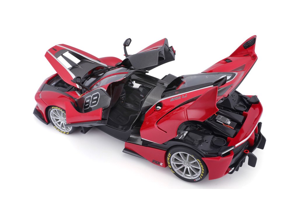 Kovový model auta 1:18 Bburago 18-16907 Ferrari FXX K nejen pro sběratele. Má otevírací dveře a kapotu, odpružené nápravy, natáčení kol volantem je plně funkční. Barva modelu je červená.