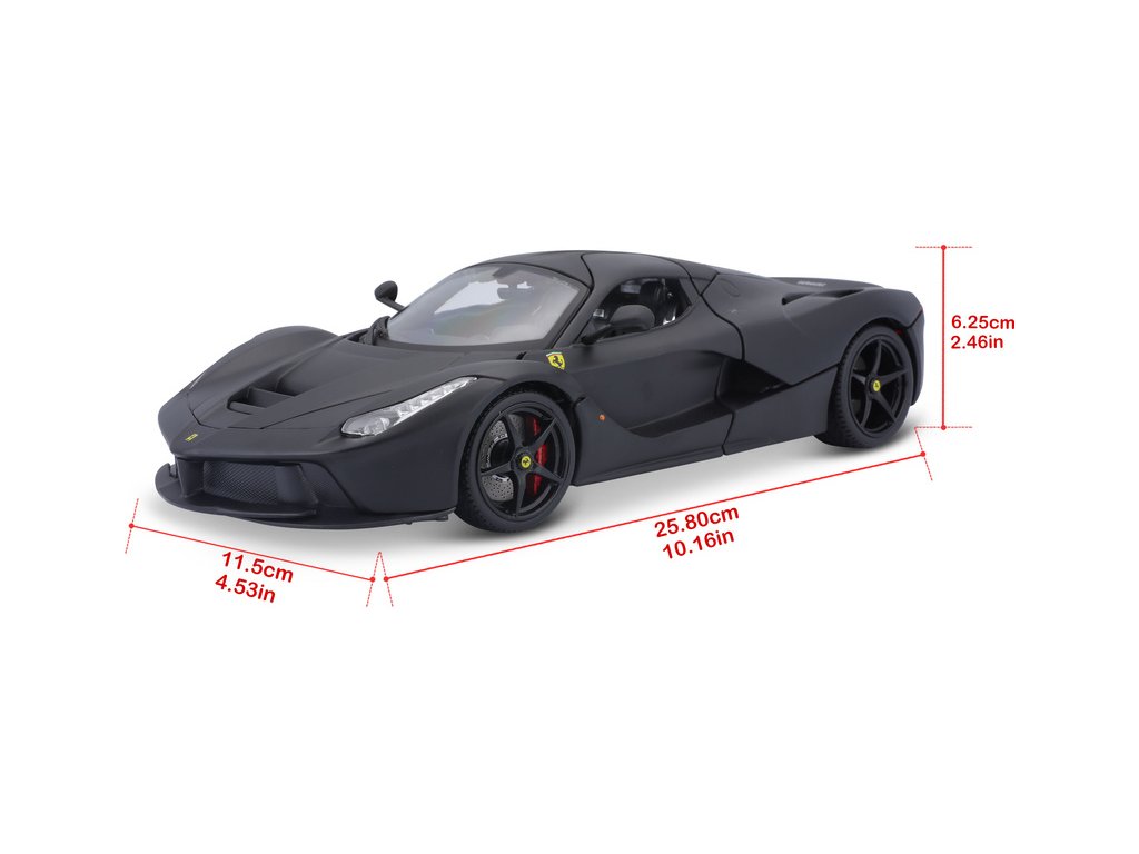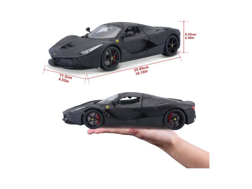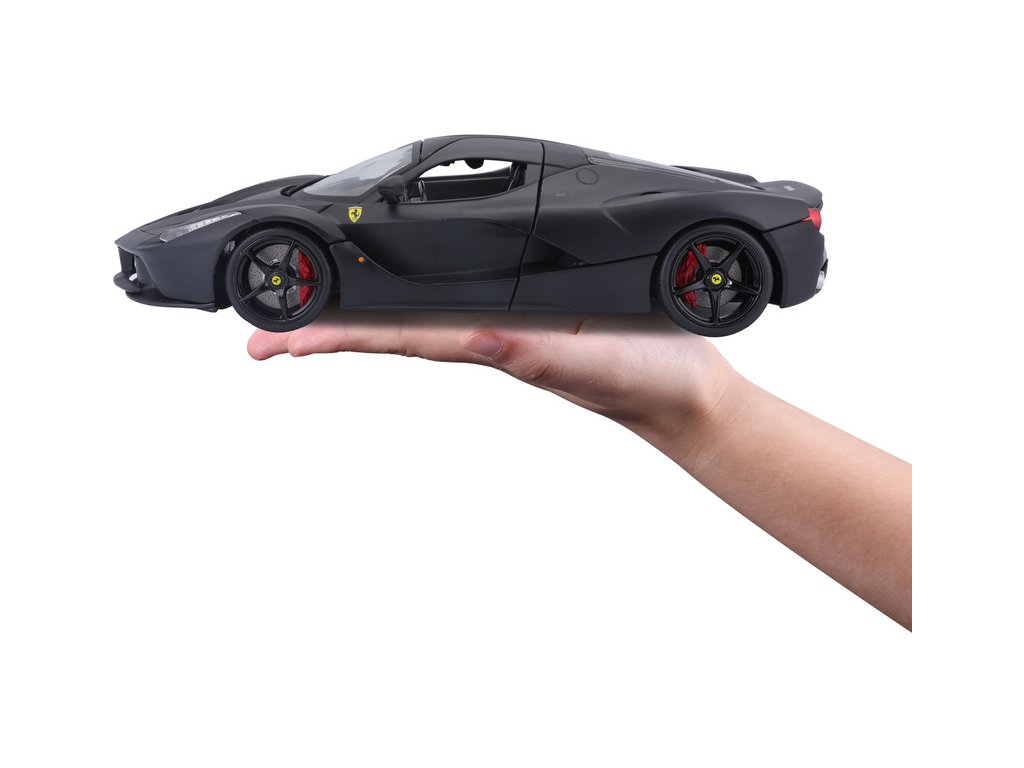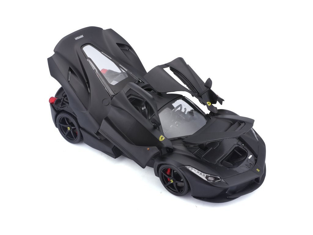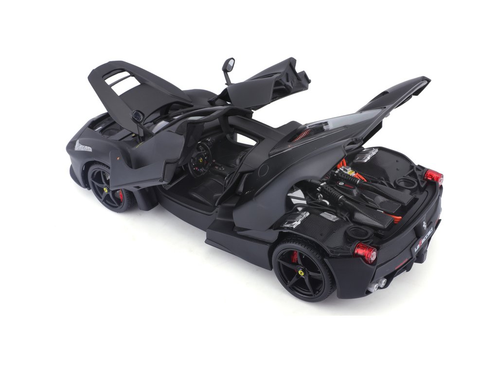 Kovový model auta Bburago 18-16901 Signature - Ferrari LaFerrari v měřítku 1:18 nejen pro sběratele. Model má otevírací dveře a kapotu, odpružené nápravy, natáčení kol volantem je plně funkční. Model je ve špičkové kvalitě Signature Series. Barva modelu je černá a je přibližně 24 cm velký.