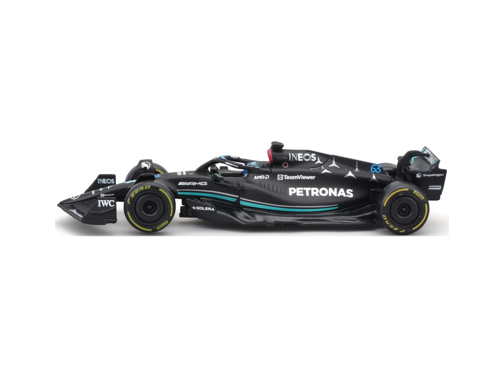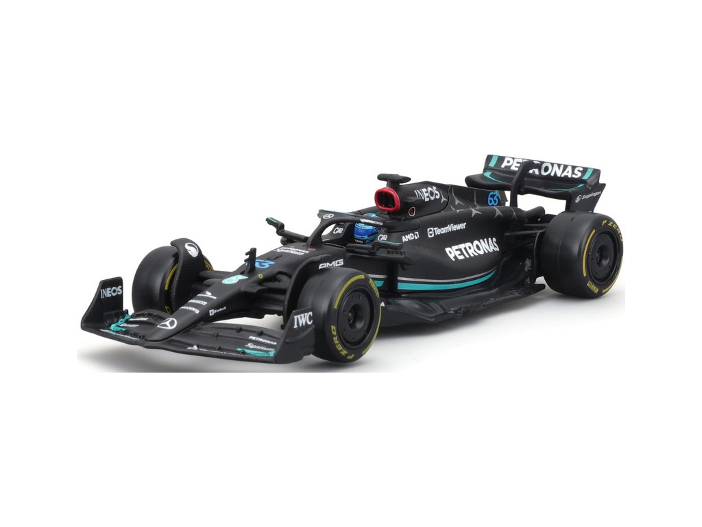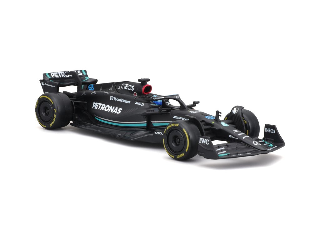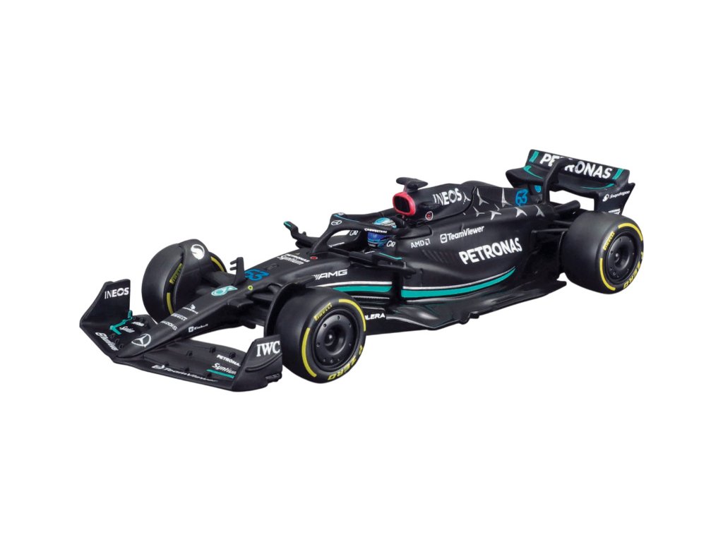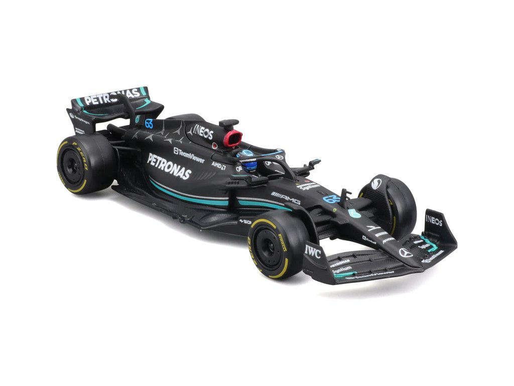 Kovový model Bburago Mercedes-AMG F1 W14 E Performance nejen pro sběratele. Detailní provedení, přívětivá cena, pilot #63 Russell.