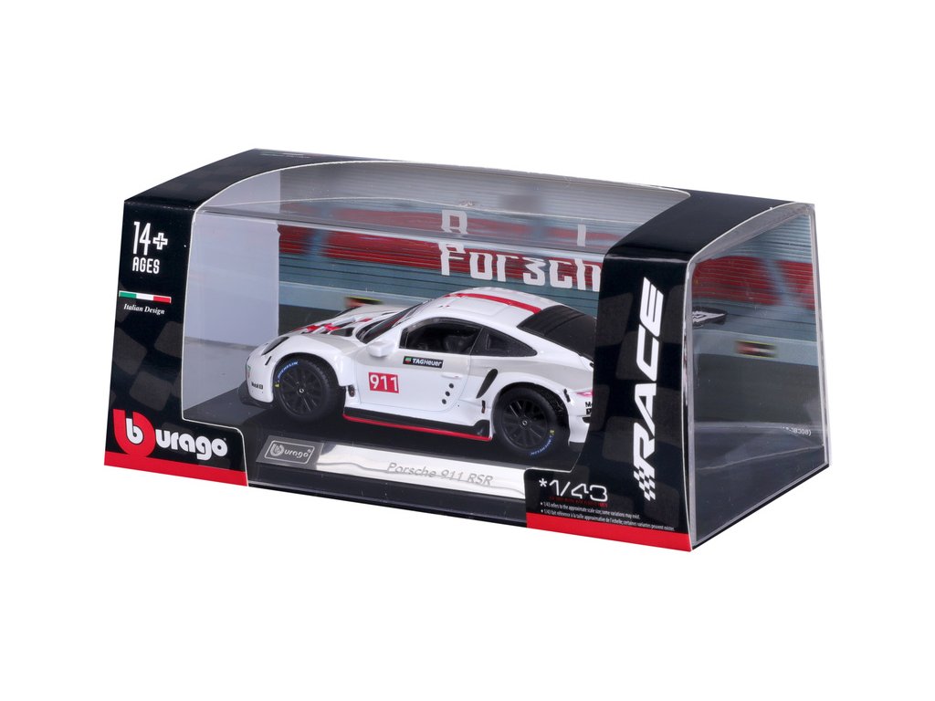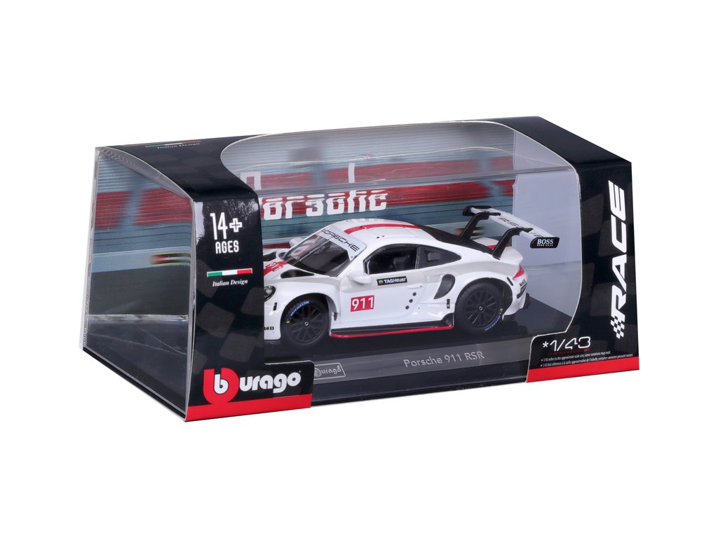 Kovový model auta 1:43 Bburago 18-38302 Sign. Porsche 911 RSR nejen pro sběratele. Model je ve špičkové kvalitě Signature Series. Je přibližně 10 cm velký.