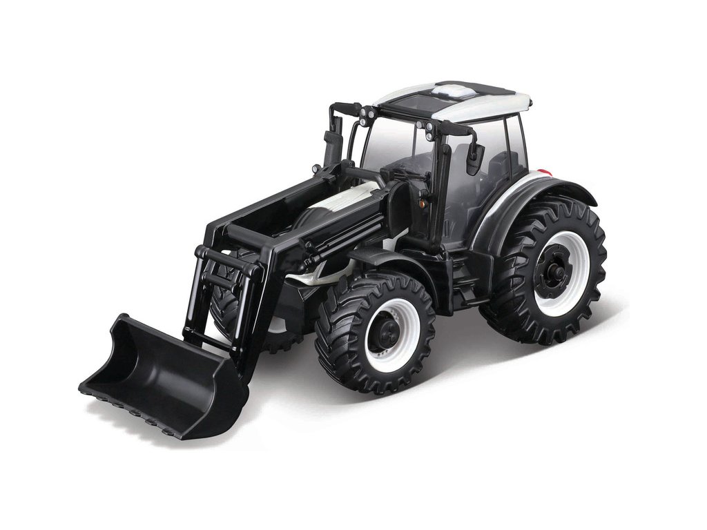 Model zemědělského traktoru Bburago 18-31638 - Valtra N174 10cm se lžící. Je vyroben z kovových a plastových dílů. Model má pryžové kolečka na setrvačník a odnímatelnou kabinu, detailní zpracování. Model v bílé barvě je přibližně 10 cm velký.