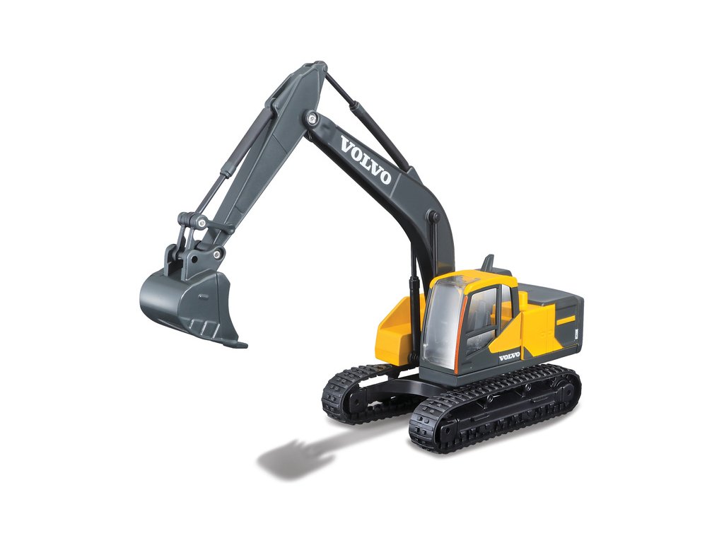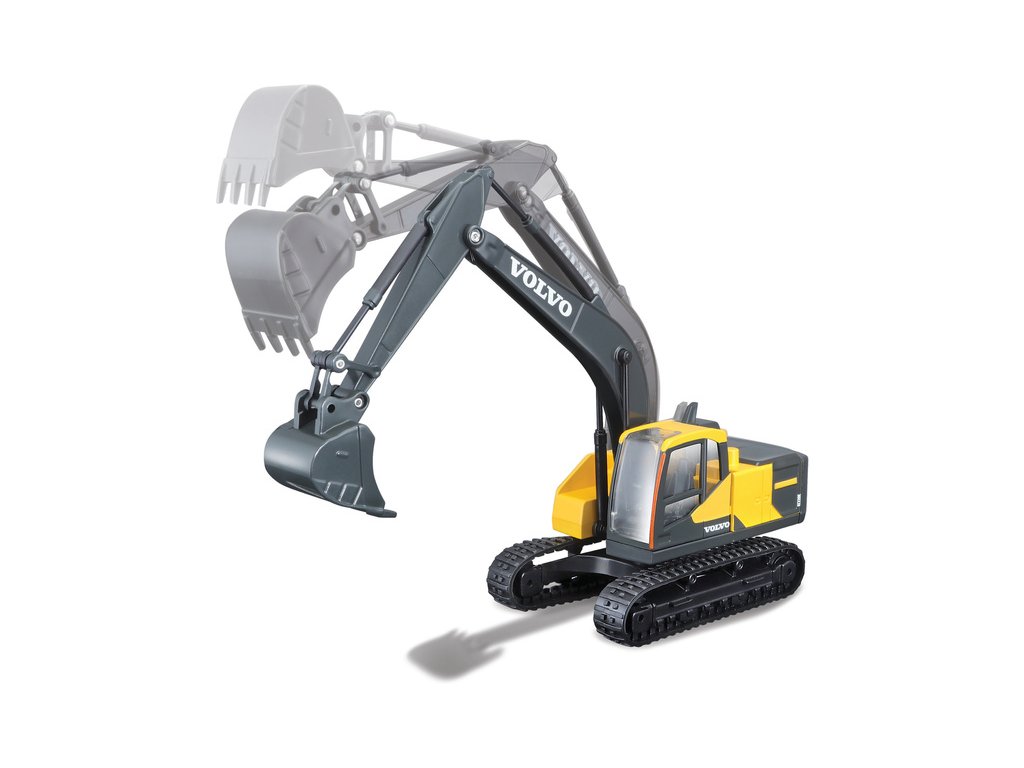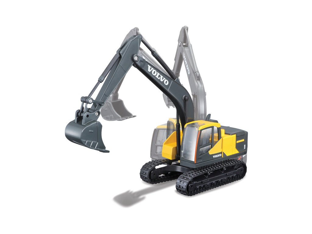 Model stavebního pásového rypadla Bburago 18-32086 - Volvo EC220E v měřítku 1:50 je vyroben z kovových a plastových dílů. Model má je otočnou kabinu s pohyblivým rypadlem.