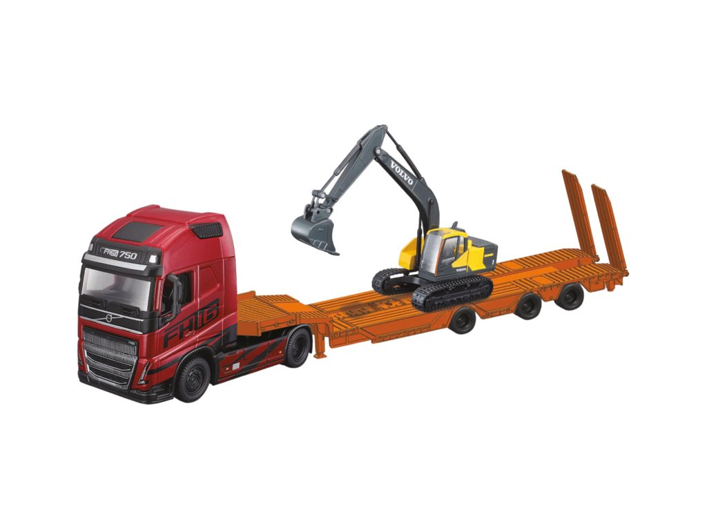 Bburago sada 18-32312 model tahače Volvo FH16 Globetrotter 750XXL a bagr EC220E v měřítku 1:43