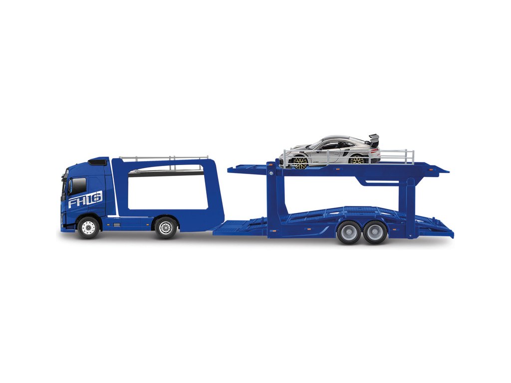Kovový model Bburago 18-31463 - Volvo FH16 s Porsche 911 GT2 RS v měřítku 1:43. Jsou vyroben z kovových a plastových dílů v detailním zpracování. Volvo FH16 má patrové pohyblivé nákladové plochy, které se dají rozdělit na dvě části. Sestavený je přibližně 45 cm velký a je modré barvy. Autíčko 911 GT2 RS má stříbrnou barvu a je přibližně 10 cm velké.