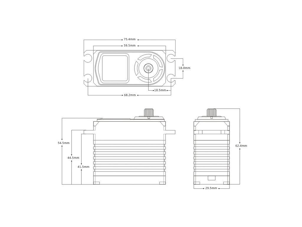 Konvenční třívodičový napájecí kabel s JR konektorem, točivý moment 125 kg a rychlost 0,085 s při napětí 8,4 V. Produkt je kompatibilní s většinou modelů aut 1/5 a 1/6 na trhu, jako jsou Crawlery, Trucky a další modely vozidel. Navíc výstupní tisícihran 15T může přímo nahradit většinu originálních serv, což uživatelům usnadňuje vylepšování a úpravy stávajících modelů aut, aniž by se museli starat o kompatibilitu.