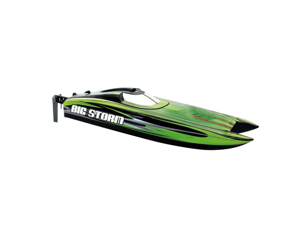 Big Storm Catamaran je výkonný RC člun s bezkartáčovým motorem a vodním chlazením, navržený pro vysoké rychlosti. Díky plastovému trupu s barevným designem je nejen odolný, ale i stylový. Ovládání zajišťuje 2.4GHz rádiový systém a CNC hliníkové kormidlo pro přesné řízení.