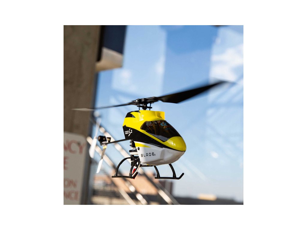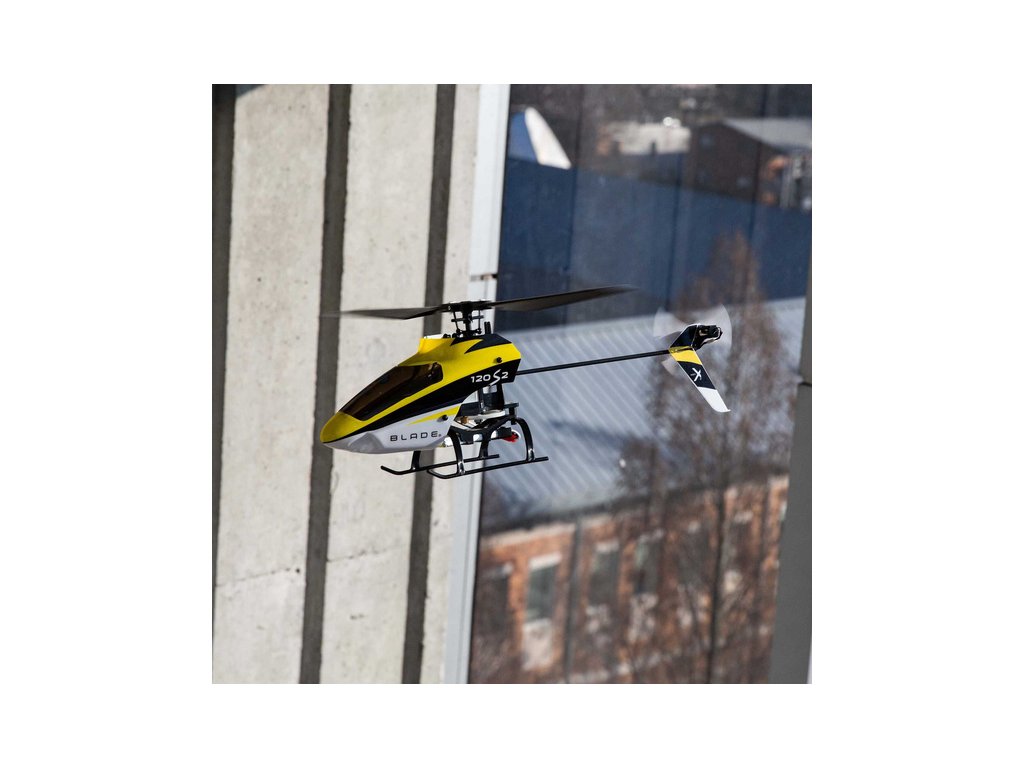 Konstrukce vrtulníku je z vysoce pružného a lehké plastového materiálu v kombinaci s uhlíkem. Většina nárazů, ke kterým dojde při nácviku, nezpůsobí žádné škody. Pokud se však něco pokazí či ulomí, jsou k dispozici náhradní díly. Piloti, kteří mají kompatibilní vysílač Spektrum s displejem můžou využít výhodu poskytování telemetrie napětí akumulátoru. Řízení zajišťují lineární mikro serva. S Blade 120S můžete díky své o něco větší velikosti, oproti mikro vrtulníkům, létat i venku v mírném větru, přesto je dostatečně malý pro létaní v různých vnitřních prostorech.
