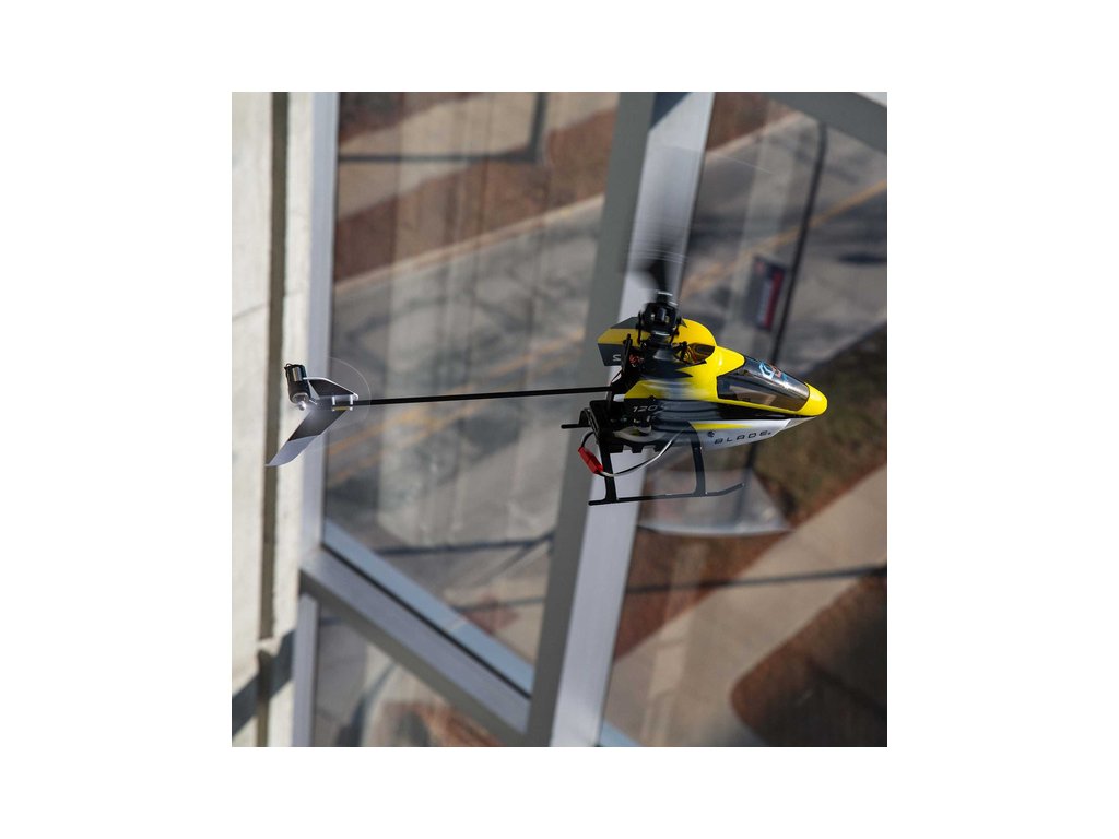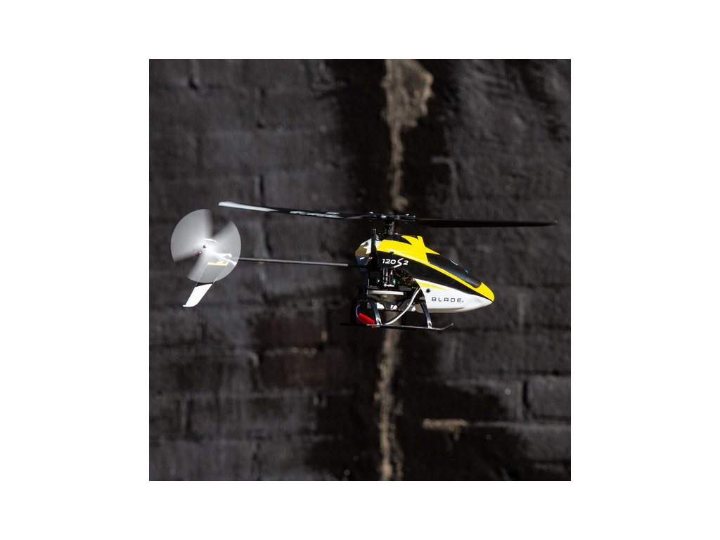 Konstrukce vrtulníku je z vysoce pružného a lehké plastového materiálu v kombinaci s uhlíkem. Většina nárazů, ke kterým dojde při nácviku, nezpůsobí žádné škody. Pokud se však něco pokazí či ulomí, jsou k dispozici náhradní díly. Piloti, kteří mají kompatibilní vysílač Spektrum s displejem můžou využít výhodu poskytování telemetrie napětí akumulátoru. Řízení zajišťují lineární mikro serva. S Blade 120S můžete díky své o něco větší velikosti, oproti mikro vrtulníkům, létat i venku v mírném větru, přesto je dostatečně malý pro létaní v různých vnitřních prostorech.