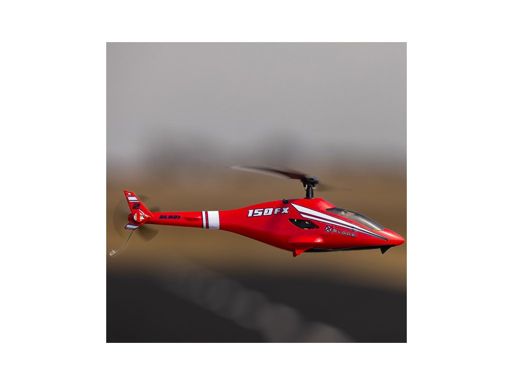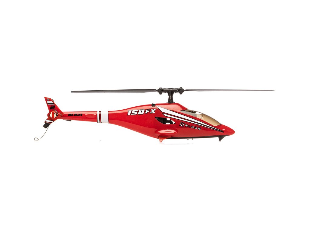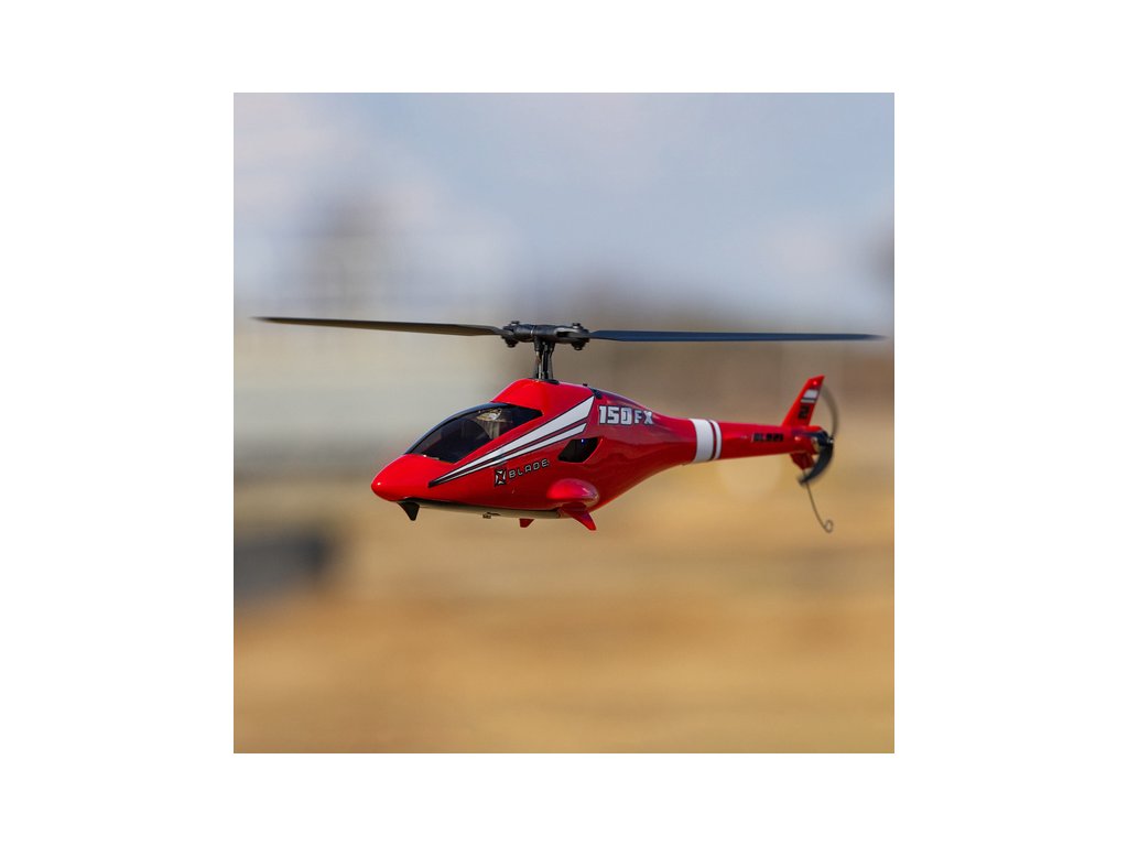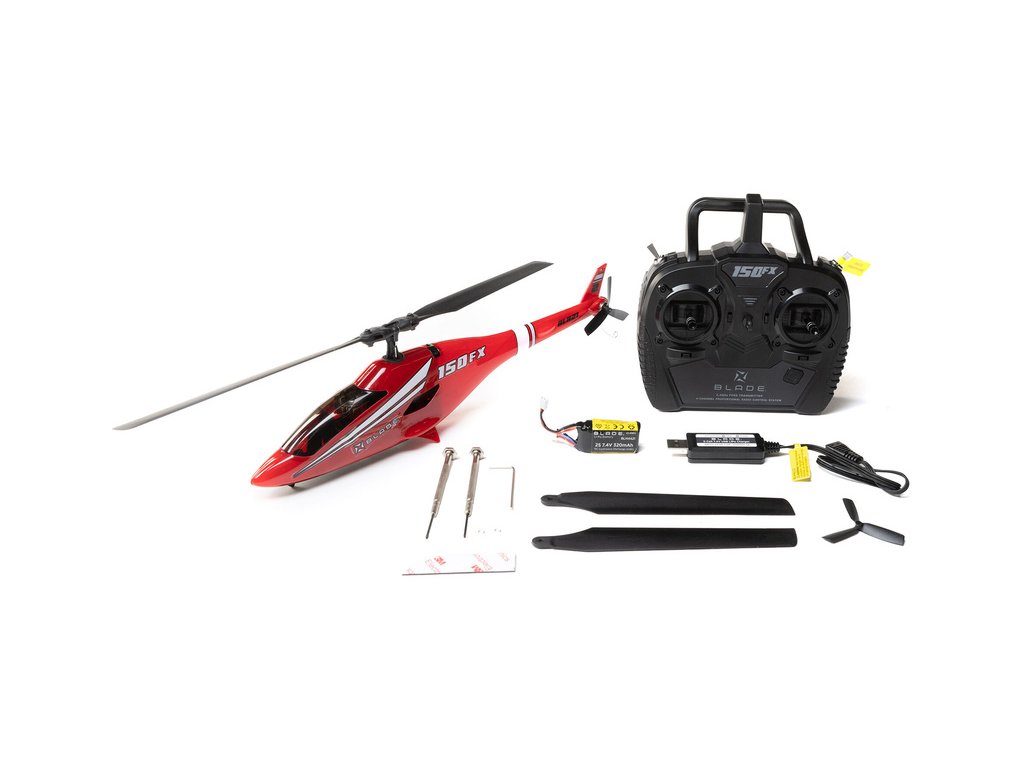 Blade® 150 FX je perfektní pro začínající piloty, připravené vyzkoušet si jednorotorový vrtulník. Jednoduchá rotorová hlava s pevným úhlem náběhu rotorových listů a řídící jednotka s integrovanou elektronickou stabilizací, umožňují pilotům užít si vysokou úroveň letové stability. Díky lehkému a nárazu vzdornému rámu je model vysoce odolný vůči kolizím a díky malému množství dílů, jsou případné opravy velmi snadné. 150FX má na kapotáži umístěno funkční poziční osvětlení z LED diod, což vám usnadní orientaci. V setu jsou obsaženy díly opravné sady, která vám pomůže dostat se zpět do vzduchu, pokud se vám přihodí nemilá kolize. Navíc 150 FX obsahuje vše co potřebujete k letu, včetně letové baterie, USB nabíječky a vysílače.