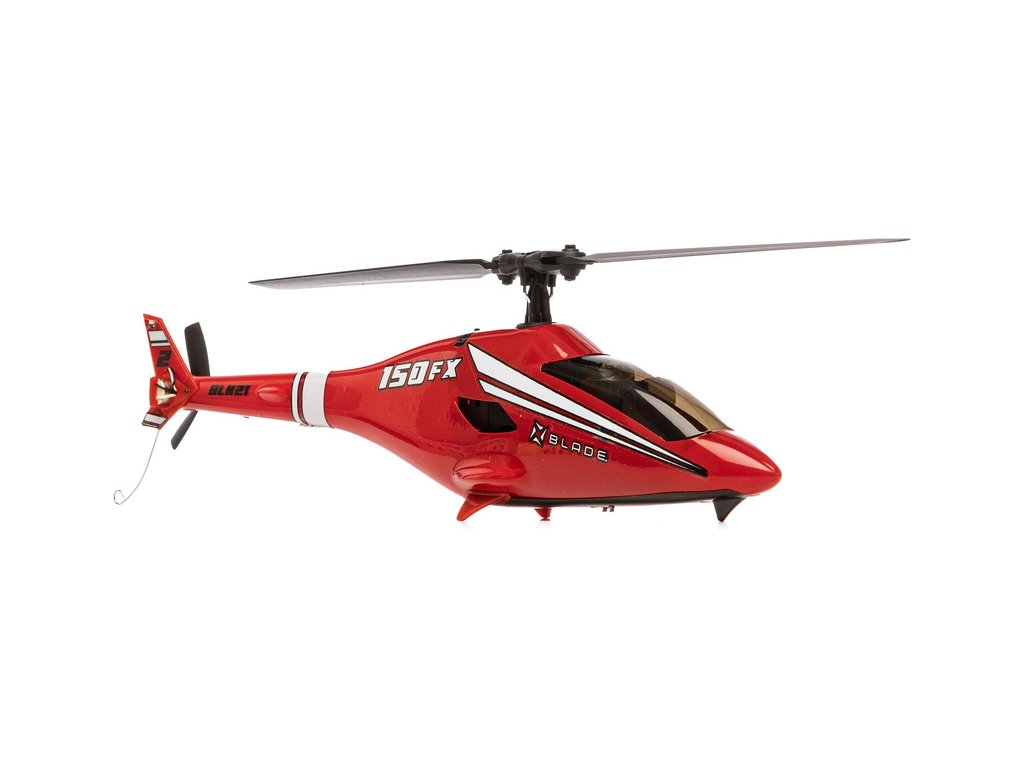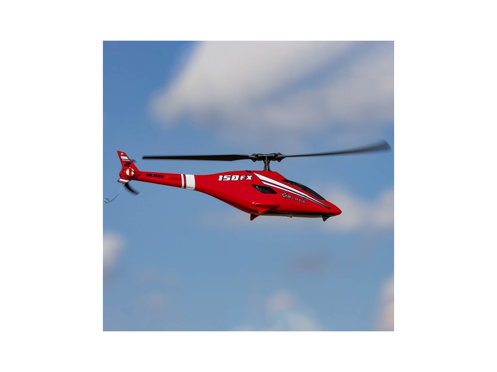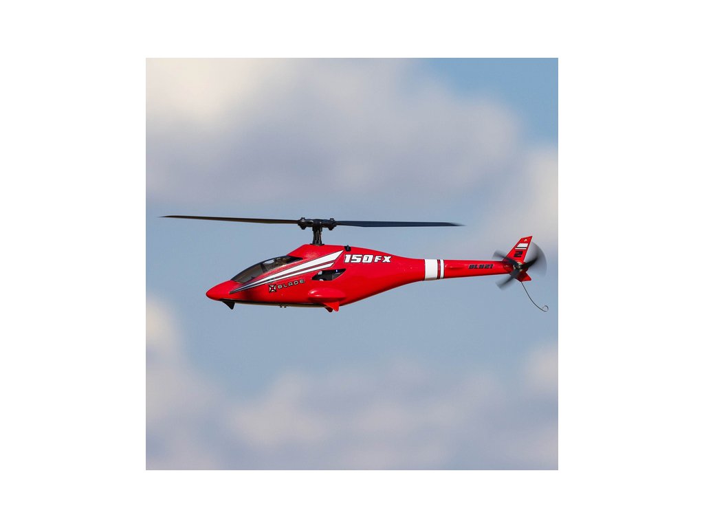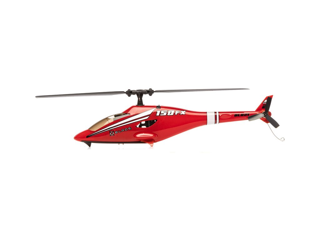 Blade® 150 FX je perfektní pro začínající piloty, připravené vyzkoušet si jednorotorový vrtulník. Jednoduchá rotorová hlava s pevným úhlem náběhu rotorových listů a řídící jednotka s integrovanou elektronickou stabilizací, umožňují pilotům užít si vysokou úroveň letové stability. Díky lehkému a nárazu vzdornému rámu je model vysoce odolný vůči kolizím a díky malému množství dílů, jsou případné opravy velmi snadné. 150FX má na kapotáži umístěno funkční poziční osvětlení z LED diod, což vám usnadní orientaci. V setu jsou obsaženy díly opravné sady, která vám pomůže dostat se zpět do vzduchu, pokud se vám přihodí nemilá kolize. Navíc 150 FX obsahuje vše co potřebujete k letu, včetně letové baterie, USB nabíječky a vysílače.