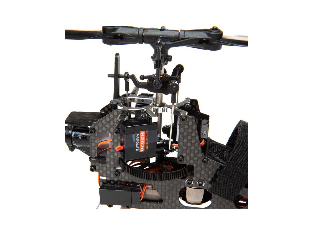 Díky pokročilým funkcím systému inovativní technologie SAFE® je nyní létání mnohem pohodlnější. I když jde o váš první vrtulník s řízeným kolektivem, máte k dispozici elektronickou stabilizaci, funkci Panika a samo vyrovnávací letové režimy, které dávají středně pokročilým až pokročilým pilotům větší jistotu, že zvládnou 3D létání v hale i venku. Hlavní rám je z uhlíkových vláken, serva mají kovové převody a hlavní listy jsou vyrobeny z vyztuženého plastu, proto mohou snáze přečkat dobu učení a zvýšit životnost modelu.