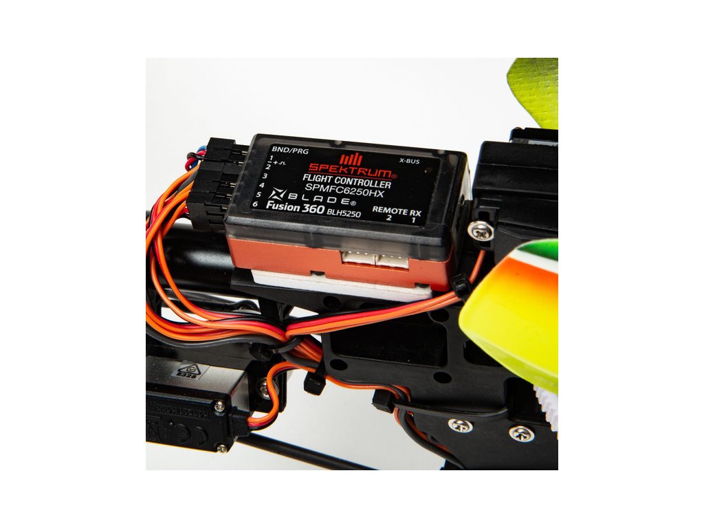 Na tlumící mechové podložce je připevněna řídící jednotka Spektrum FC6250HX, která obsahuje potřebný řídící software technologie SAFE a AS3X.