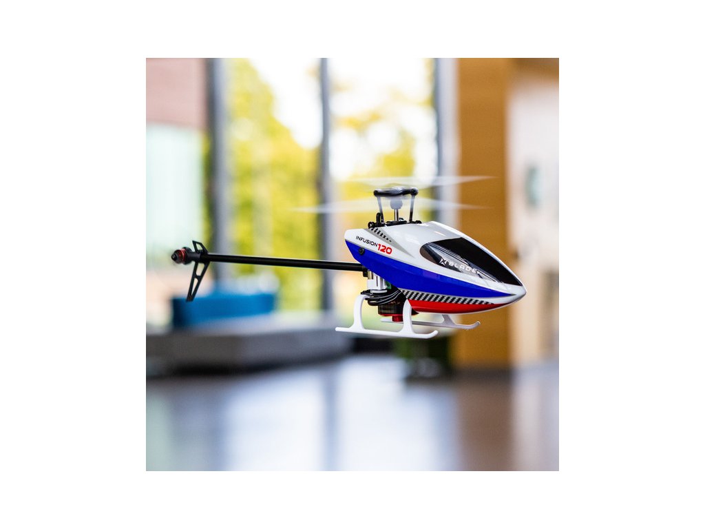 Řídící jednotka Spektrum™ Smart s nejnovějším algoritmem řízení letu poskytuje jak stabilní let, tak vysoce manévrovatelné akrobatické letové schopnosti. Díky dobře dimenzovanému napájecímu systému s přímým pohonem střídavým motorem 2305 - 1300Kv, nepohánějí hlavní rotor žádná ozubená kola, což snižuje počet mechanických dílů a ztrátu výkonu převody. InFusion 120 je vhodný pro středně pokročilé až zkušené piloty vrtulníků, kteří hledají vysoce výkonný model do malých prostor a možnost tréninku akrobacie prakticky kdekoli. S verzí BNF® Basic máte zaručeno pohodlí při přípravě, protože vše co musíte udělat, je přidat vlastní 2S 280-300mAh LiPol baterii (doporučuje se SPMX3002S30), připojit ji ke kompatibilnímu 6+ kanálovému vysílači Spektrum DSMX/DSM2.