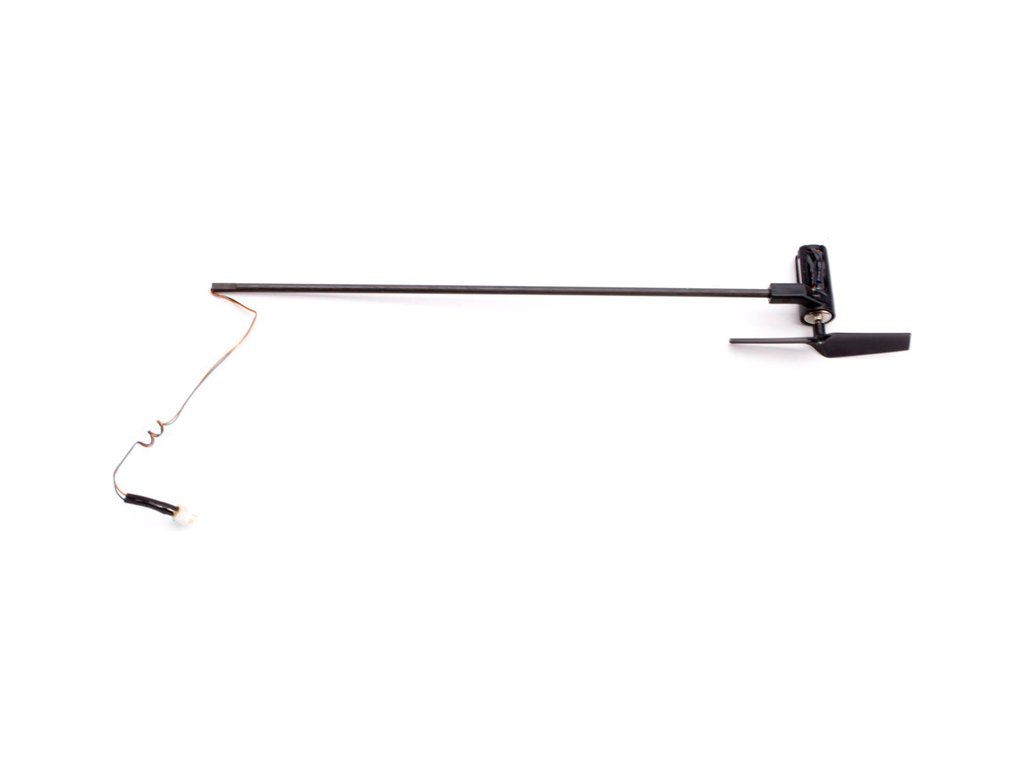 Nosník ocasní části vrtulníku Blade mCP S/X/2 je tvořen dutou uhlíkovou trubičkou, vodiče jsou od motoru vedeny vnitřkem trubičky.