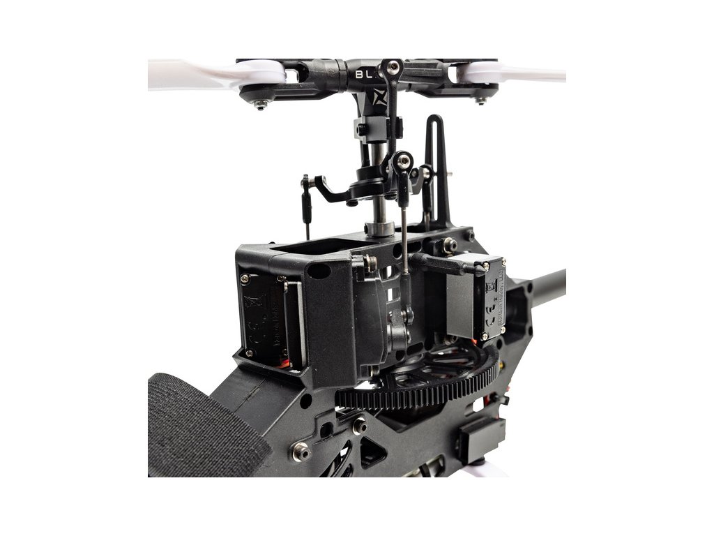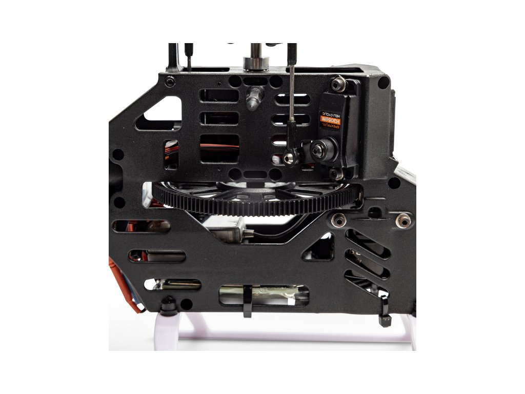 Zvýšenou odolnost a přesnost vrtulníku zajišťují nová digitální serva s kovovými převody, přepracovaný design rámu, vylepšená geometrie hlavy rotoru, hliníková deska cykliky a blok hlavy rotoru.