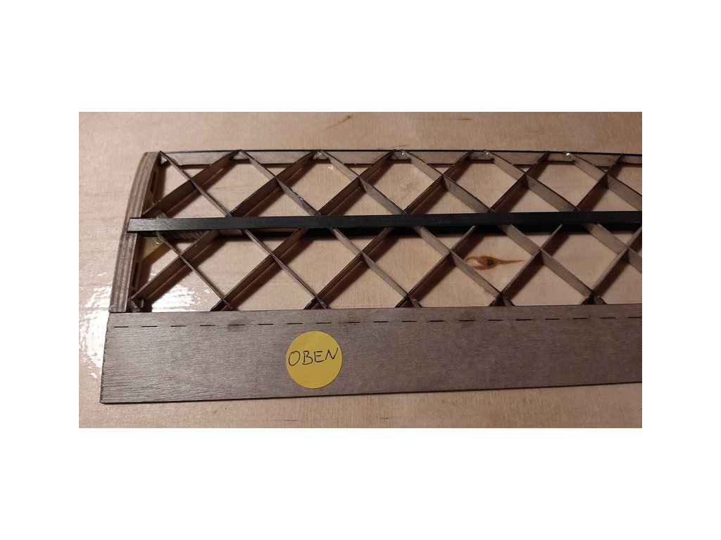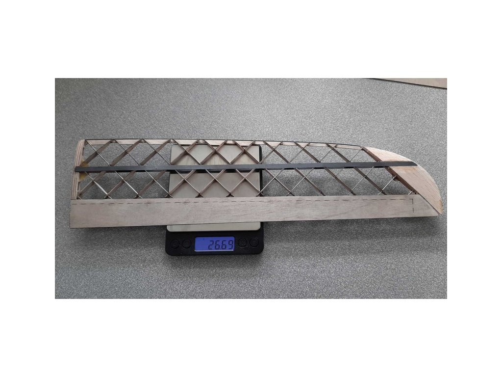 Pro pevnou, lehkou a tuhou konstrukci křídla, je zvolena diagonální montáž žeber. Křídlo má funkční křidélka a je pro možnost demontáže půlené.