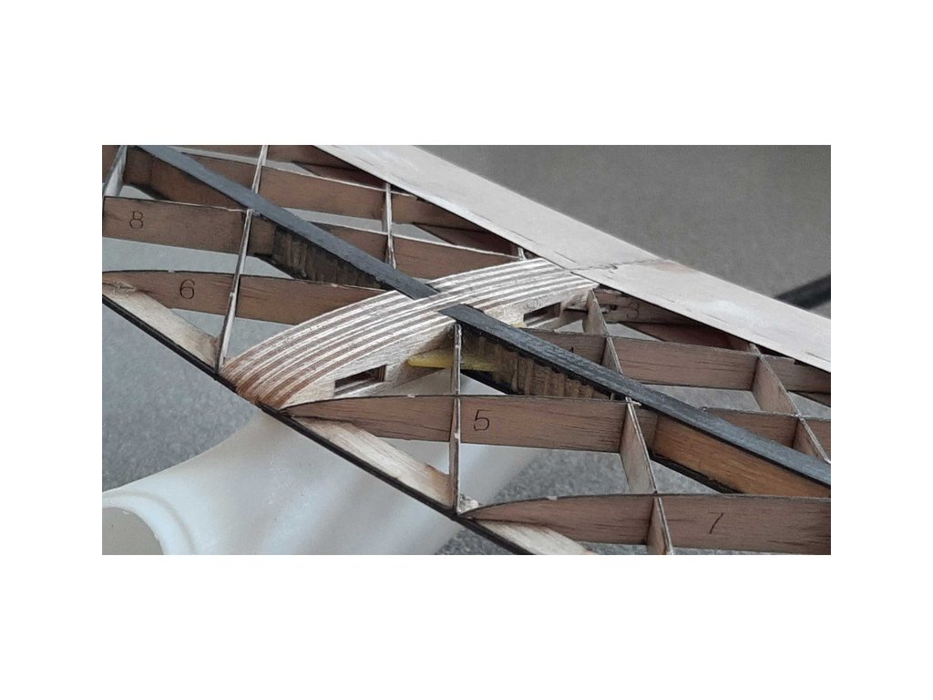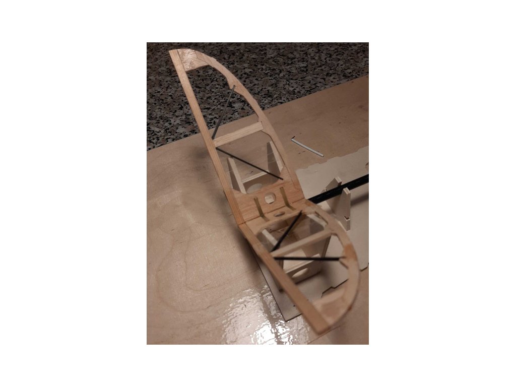 V trupu jsou umístěna serva pro motýlkové ocasní plochy, které se namontují do vlepené překližkové konstrukce.