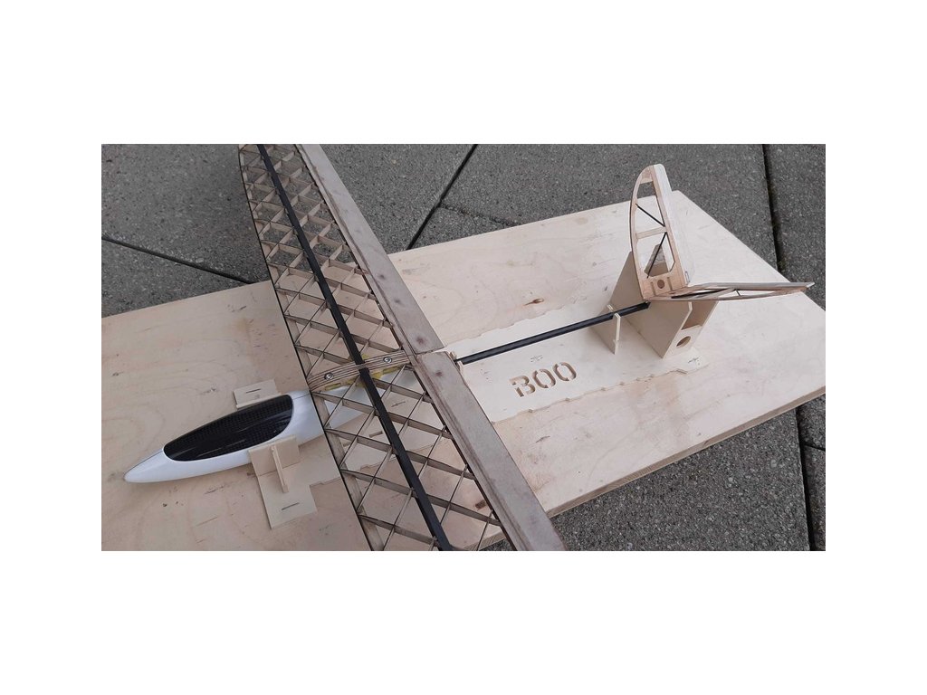 Stavebnice RC modelu větroně Boo Slope Kit o rozpětí 0,8m. Malý rozměry, ale je navržen pro velkou zábavu na svazích a terénních vlnách. Model byl vyvinut pomocí moderní 3D CAD technologie, laserem vypálené dřevěné díly se spojí a slepí v několika jednoduchých krocích. Stavba je poměrně rychlá a zvládnou ji za pár večerů i nezkušení modeláři. Výhodou je hotový laminátový trup, ke kterému připevníte křídlo a motýlkové ocasní plochy.