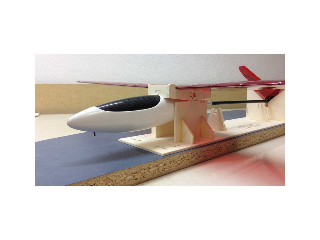 Při finální montáži pomůže s ustavením modelu jednoduchý přípravek, ve kterém ustavíte symetricky ocasní plochy s křídlem a trupem.