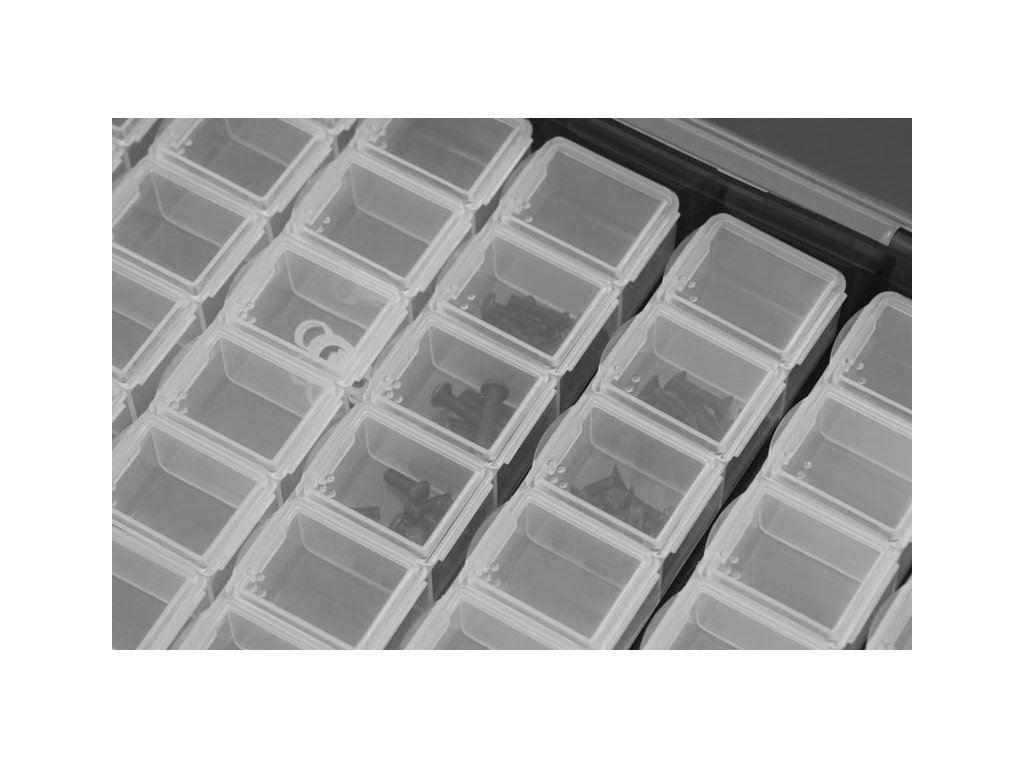 - 49 přihrádek, vhodných pro často používané drobné součástky