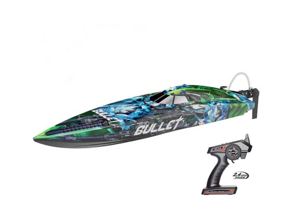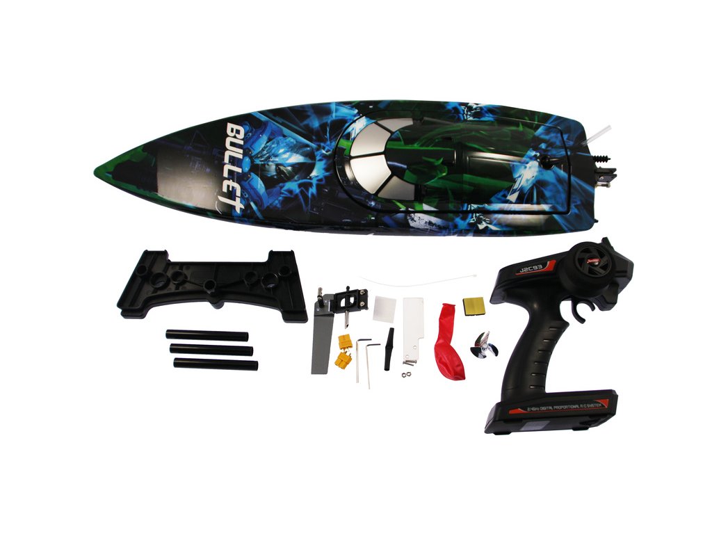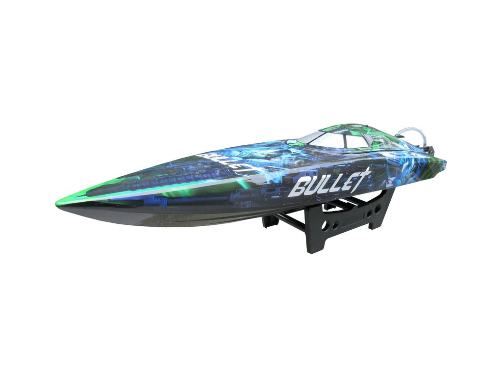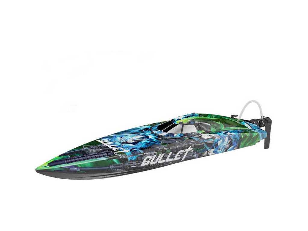 Jako střela vyrazí po vodní hladině rychlostní RC model člunu na dálkové ovládání Bullet Brushless V4 2.4GHz. Délka více než 70cm, střídavý vodou chlazený motor BL2815 a regulátor 60A. RC souprava 2,4 GHz FHSS s přijímačem J2C91R. Nové atraktivní zbarvení.