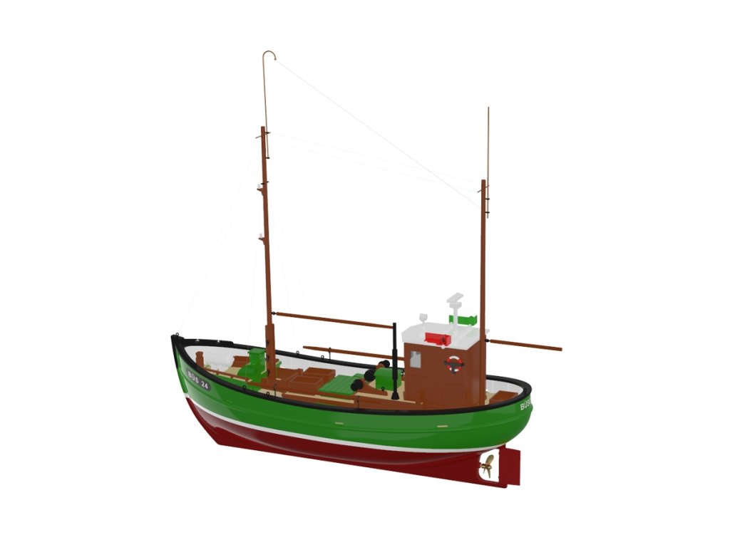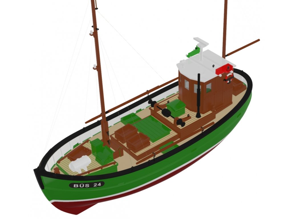 Stavebnice rybářského kutru o délce 258 mm v měřítku 1:50 v rozsypu. Plastový trup a nástavby, dýhová paluba s věrně naznačenými spárami, množství plastových maketových detailů, kovových fotoleptaných dílů a další hotové příslušenství umožňují snadnou a rychlou stavbu.