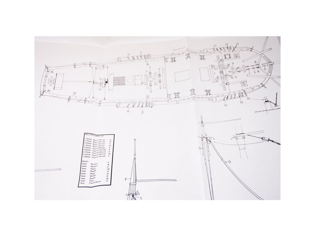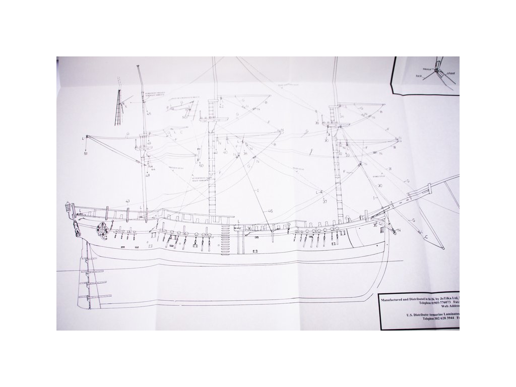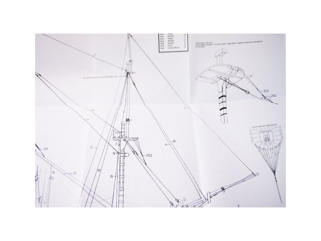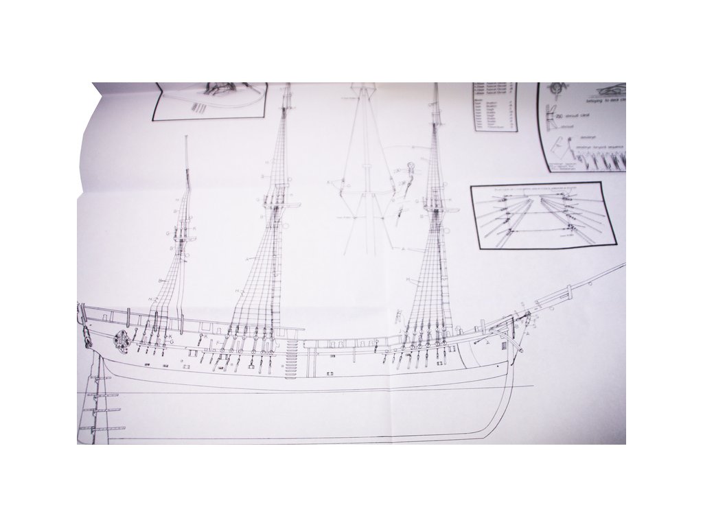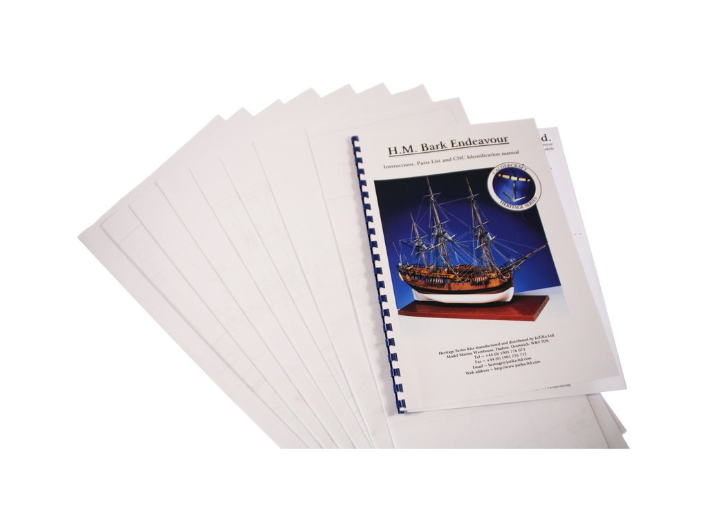 Set obsahuje kompletní sadu výkresové dokumentace modelu v měřítku 1:1 s obrázky jednotlivých detailů. Na výkrese jsou v měřítku nakresleny montážní sestavy, jejich kompletace a to včetně stěžňů a ráhen a způsob vázání lanoví. Vícejazyčný postup stavby rámcově upravuje logické sestavení jednotlivých komponentů.