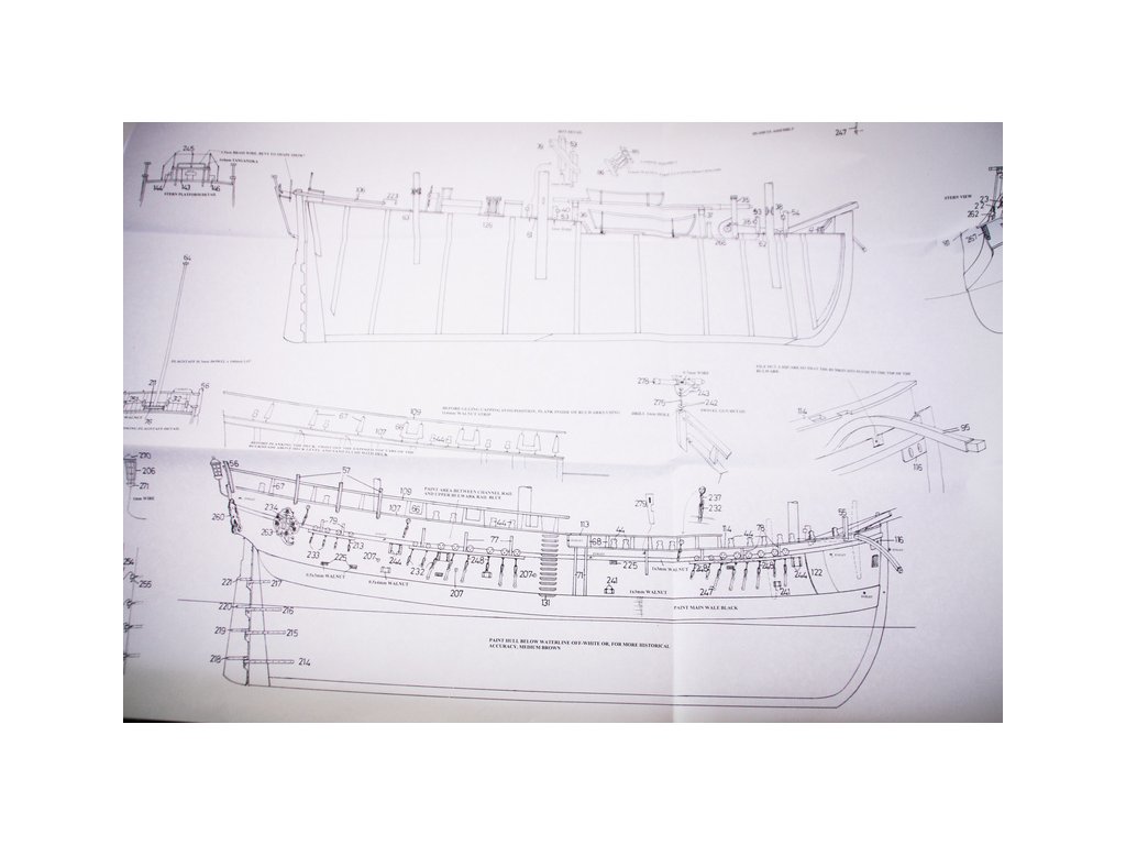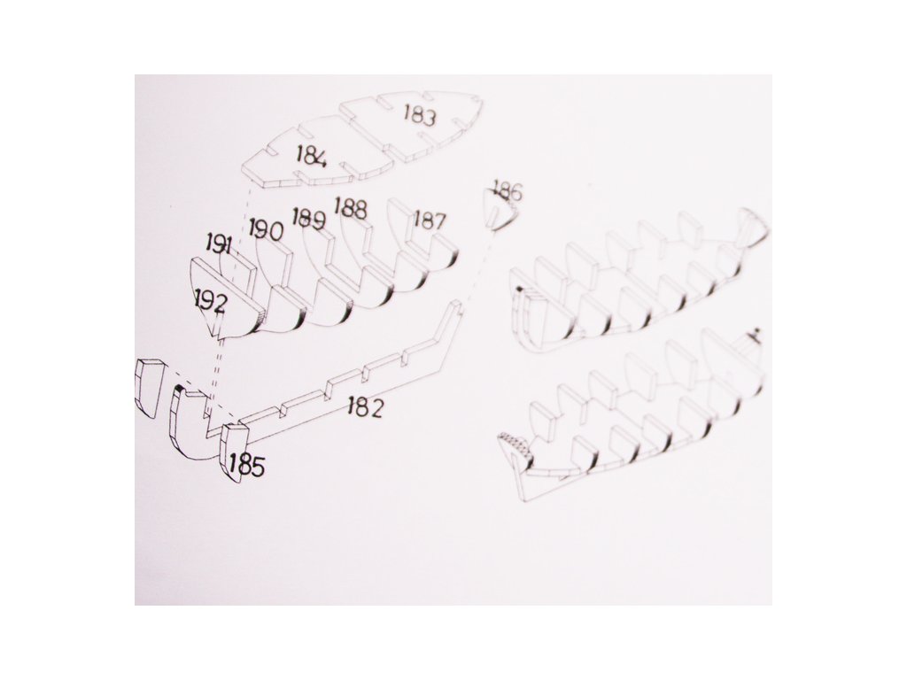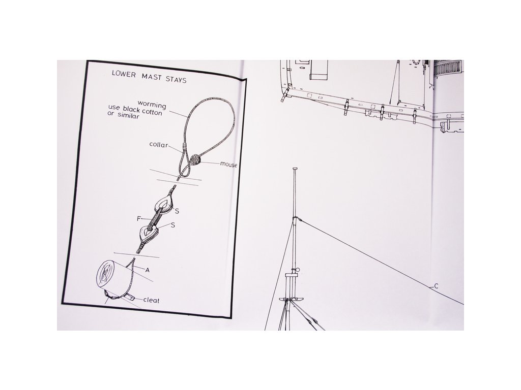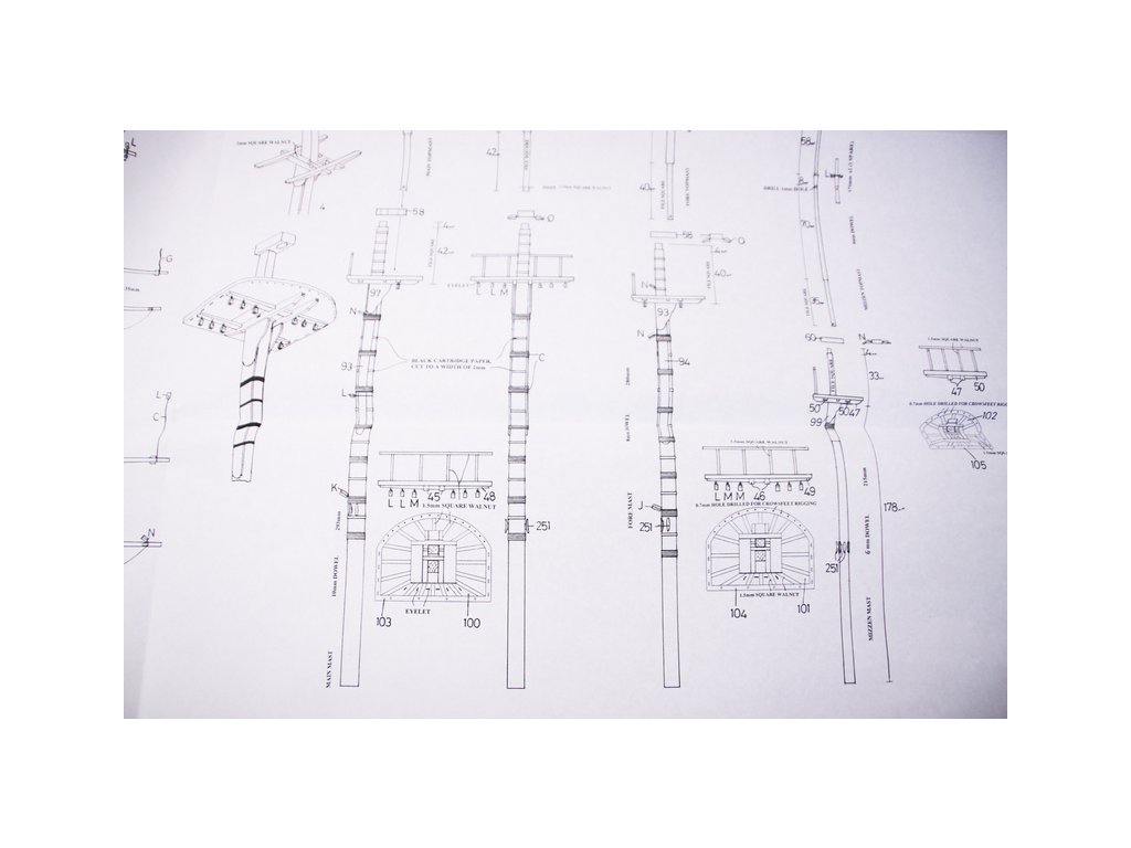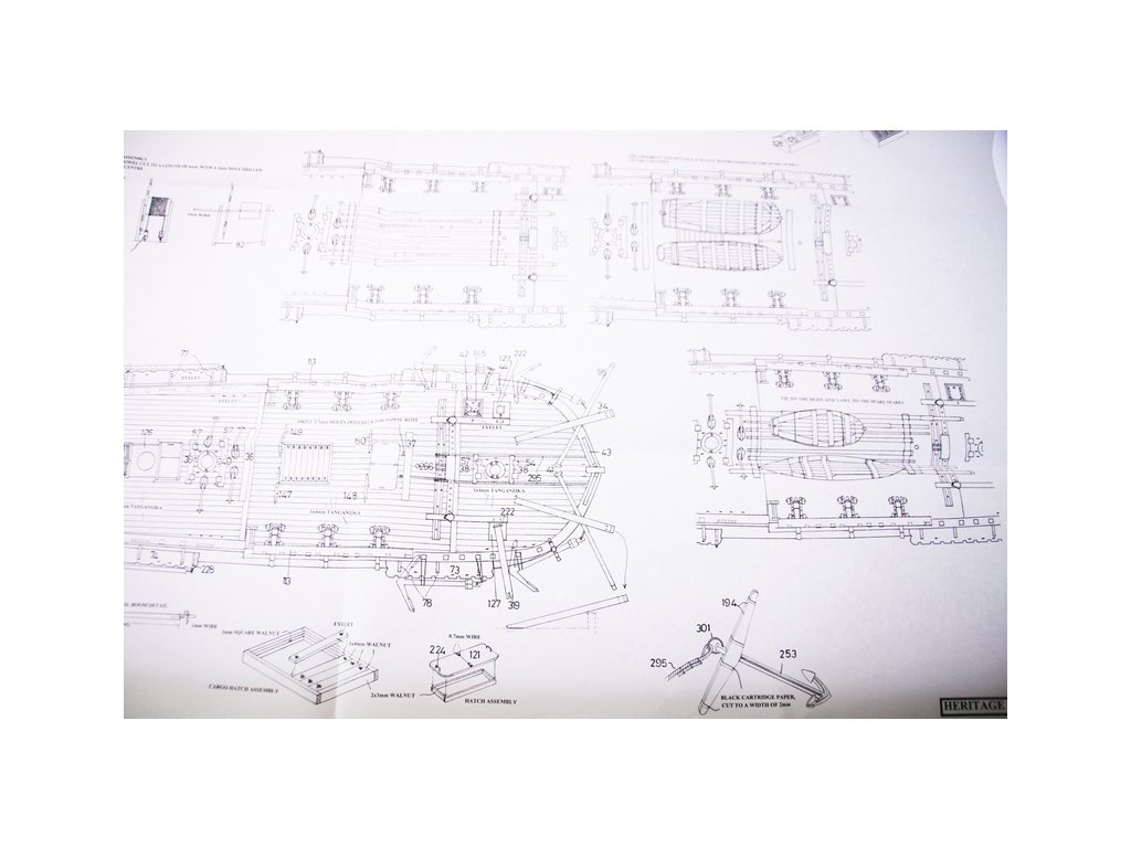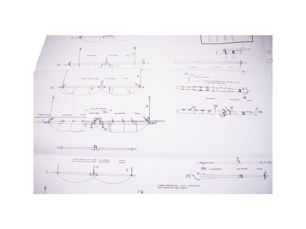 Set obsahuje kompletní sadu výkresové dokumentace modelu v měřítku 1:1 s obrázky jednotlivých detailů. Na výkrese jsou v měřítku nakresleny montážní sestavy, jejich kompletace a to včetně stěžňů a ráhen a způsob vázání lanoví. Vícejazyčný postup stavby rámcově upravuje logické sestavení jednotlivých komponentů.