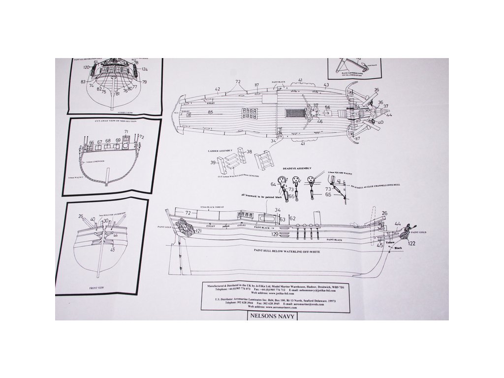 Set obsahuje kompletní sadu výkresové dokumentace modelu v měřítku 1:1 s postupem stavby, na výkrese jsou pečlivě označeny díly a je zde i seznam jednotlivých součástí modelu.
