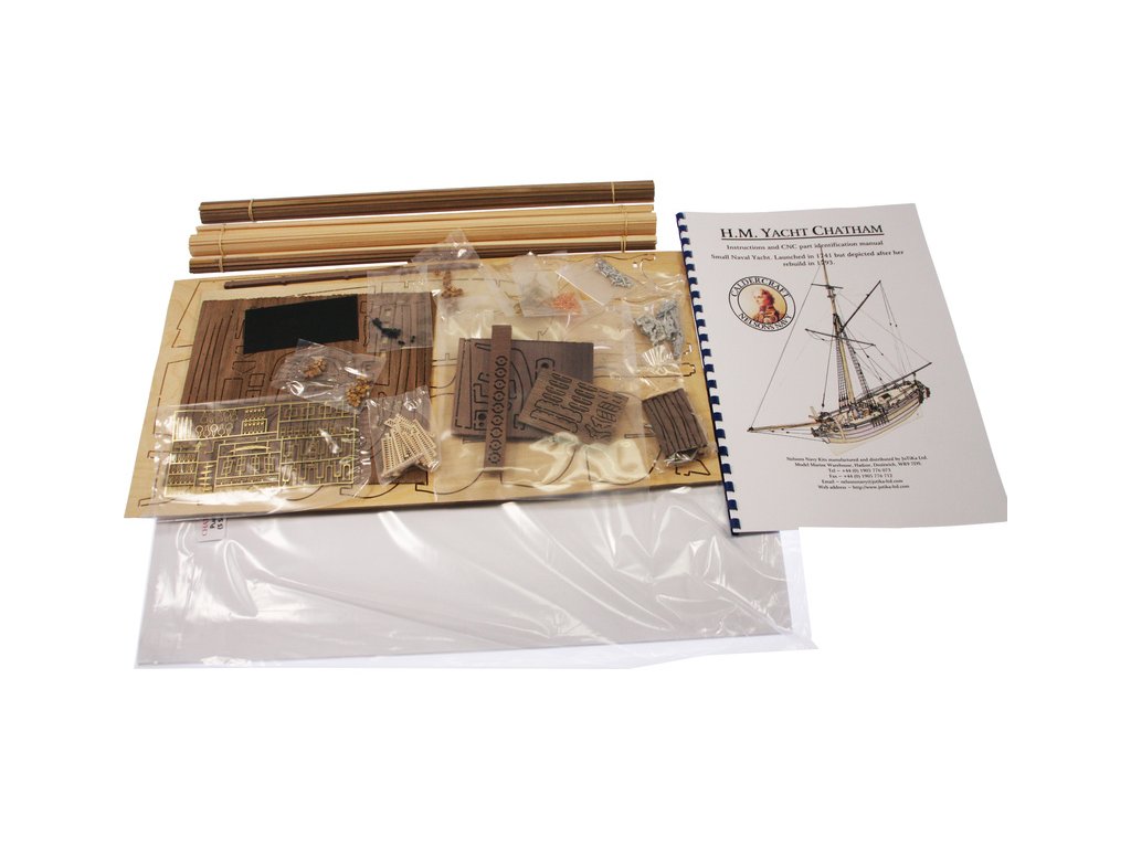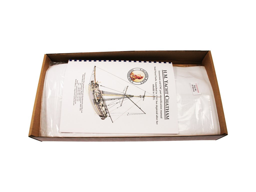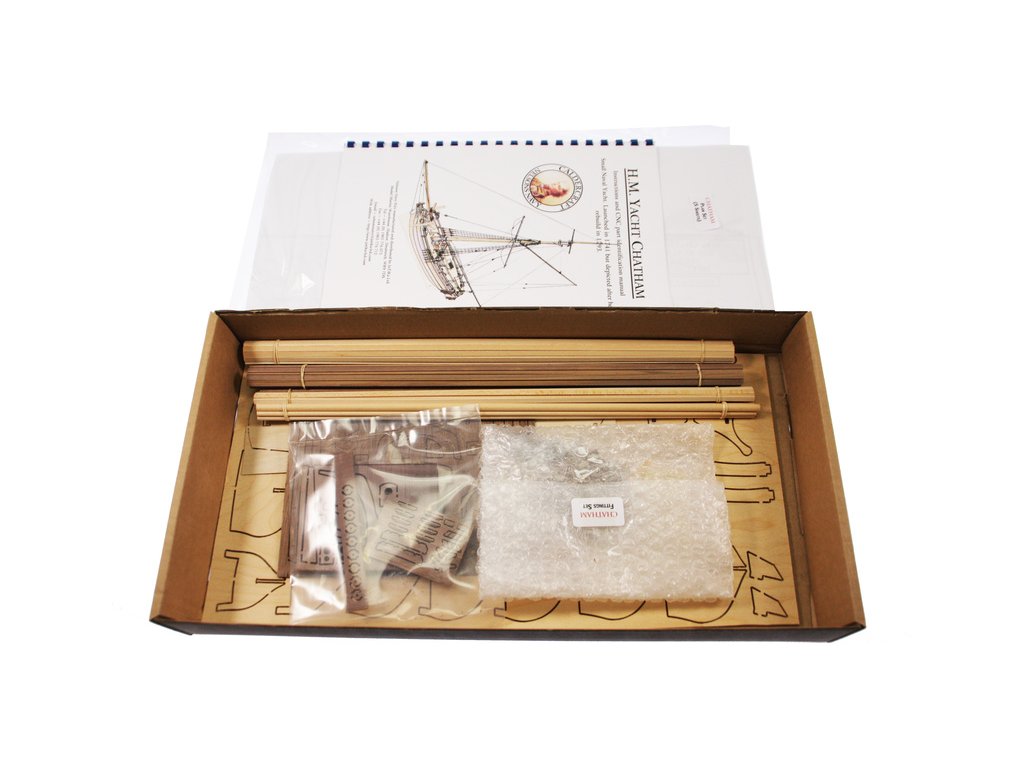 Obsahem balení je stavebnice lodi CALDERCRAFT H.M. Chatham 1660 1:64 kit. Balení obsahuje sadu překližkových dílů, sadu dřevěných lišt o různém průřezu, sáčky s drobnými díly, díly z mosazi, sadu výkresů, návod CZ a vícejazyčný manuál.