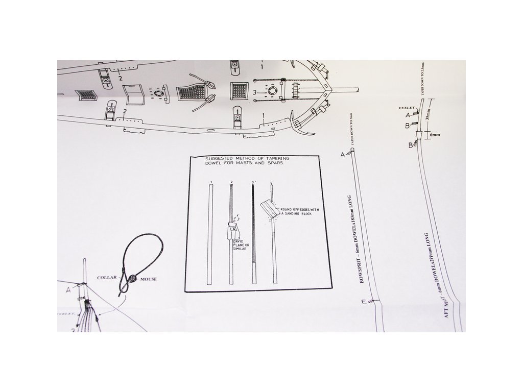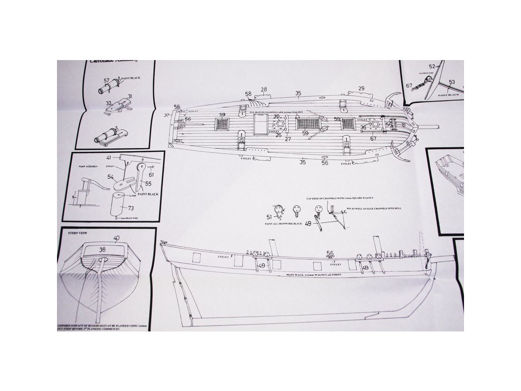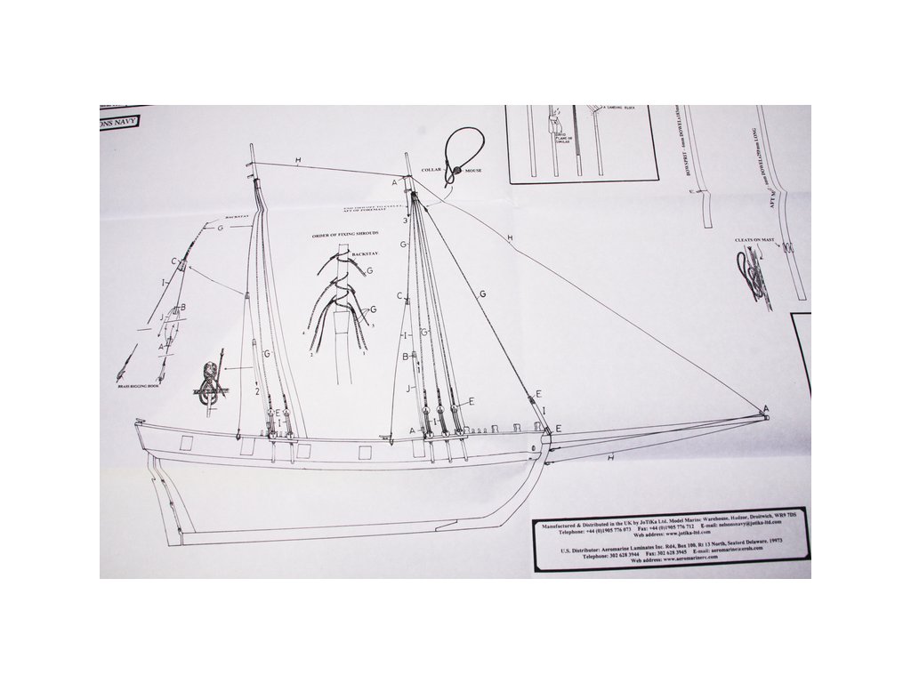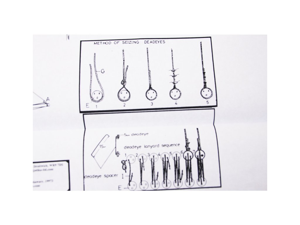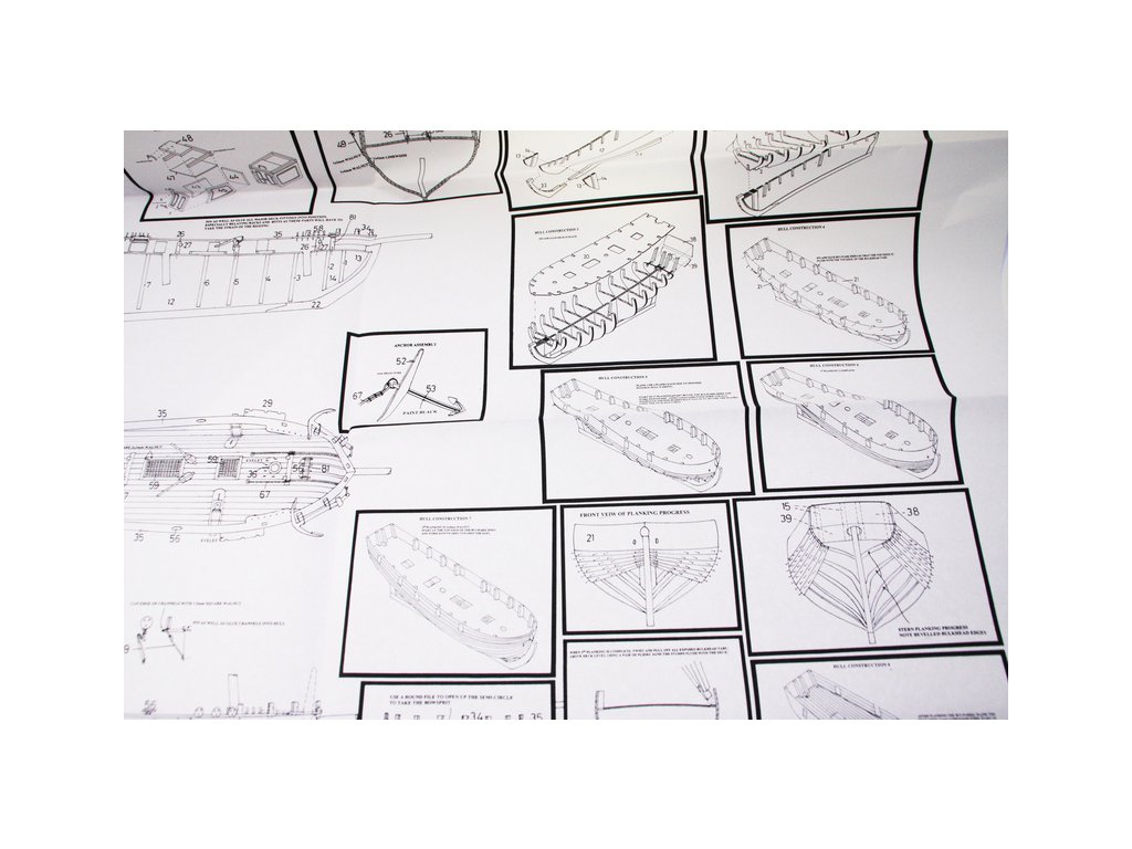 Set obsahuje kompletní sadu výkresové dokumentace modelu v měřítku 1:1 s obrázky jednotlivých detailů. Na výkrese jsou v měřítku nakresleny montážní sestavy, jejich kompletace a to včetně stěžňů a ráhen a způsob vázání lanoví. Vícejazyčný postup stavby rámcově upravuje logické sestavení jednotlivých komponentů.