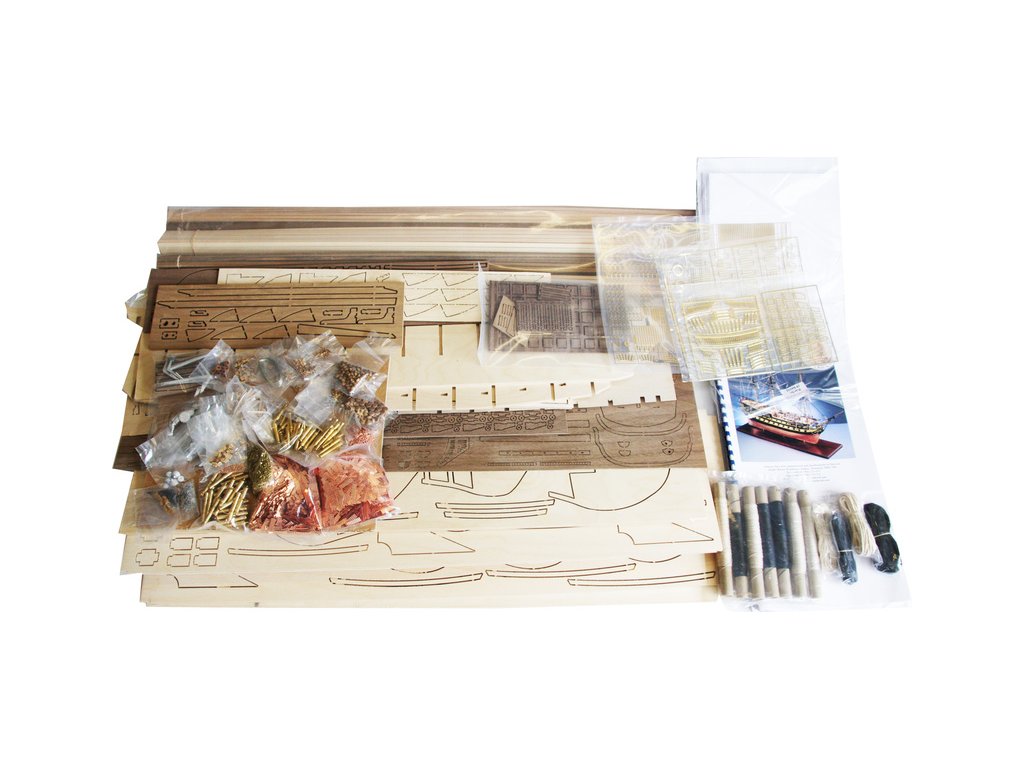 Stavebnice je detailně propracována pro co největší věrnost originálu. Na detailech se podílelo i Britské námořní muzeum, které poskytlo plány a dokumenty originálu. Stavebnice obsahuje obráběné CNC díly ze dřeva včetně 64 mosazných děl, 24-, 18- a 9palcových, černé a přírodní kroucené motouzy, kování z litého kovu nebo leptané mosazi, 9 podrobných listů stavebního plánu, podrobný stavební návod a 2500 měděných tvarovek pro trup pod čárou ponoru.