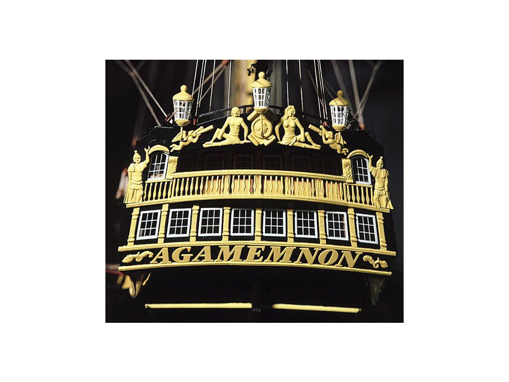 Stavebnice modelu lodi CALDERCRAFT H.M.S. Agamemnon 1793 1:64, která byla jednou z nejznámějších lodí britského královského námořnictva. Byla používána v letech 1793-1796 kapitánem Nelsonem, který ji vždy označoval za svou "oblíbenou loď". Mezi nejdůležitější bitvy patří bitvy Kodaň, Trafalgar a bitva u Santo Dominga.